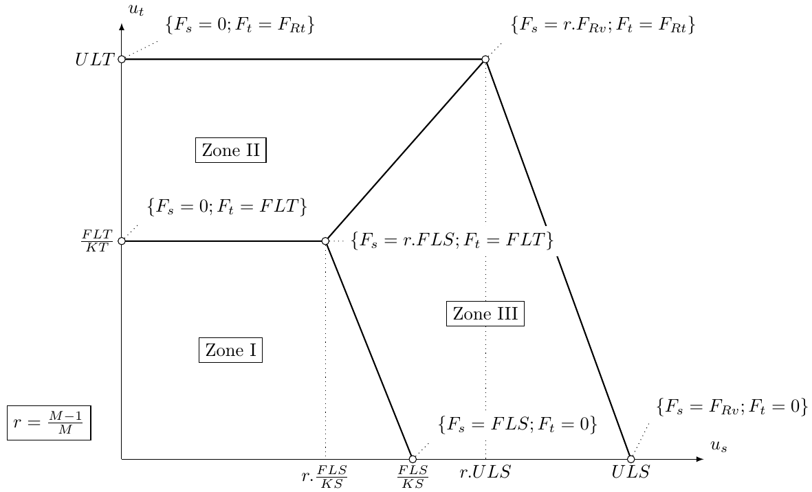 The force-deformation diagram is constructed using the following equations: