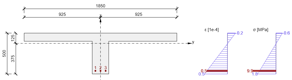 - Concrete tensile stress is limited by value fct,eff according to art. 7.1 (2) EN 1992-1-1.