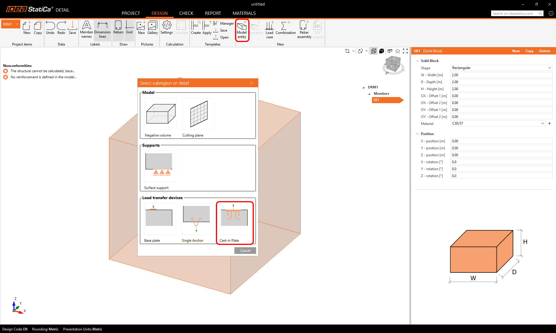 When implemented in IDEA StatiCa Detail, cast-in plates unlock more anchoring possibilities for reinforced concrete blocks, allowing engineers to design and analyze complex anchorage systems. This integration enables optimized designs and a more efficient workflow in reinforced concrete detailing.