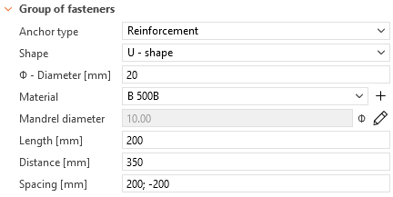 • Straight: Anchors can be arranged in rows and positions following a predefined key (similar to bolt placement in Connections). Users can define material, length, and diameter, as well as specify an anchorage type.