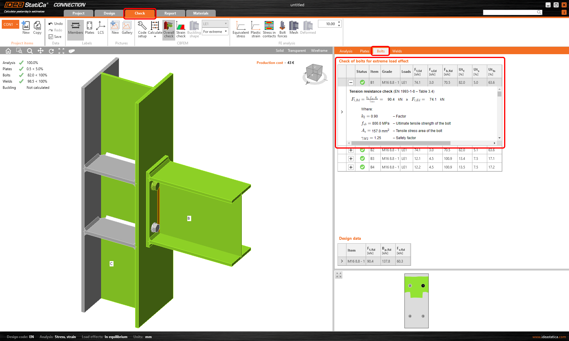 Moreover, because of the consideration of the real stiffness of the components, the results include prying. Nothing is neglected.