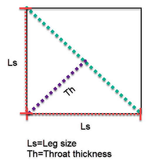 • For double-sided fillet weld, weld throat thickness equals half of the thinner connected plate.