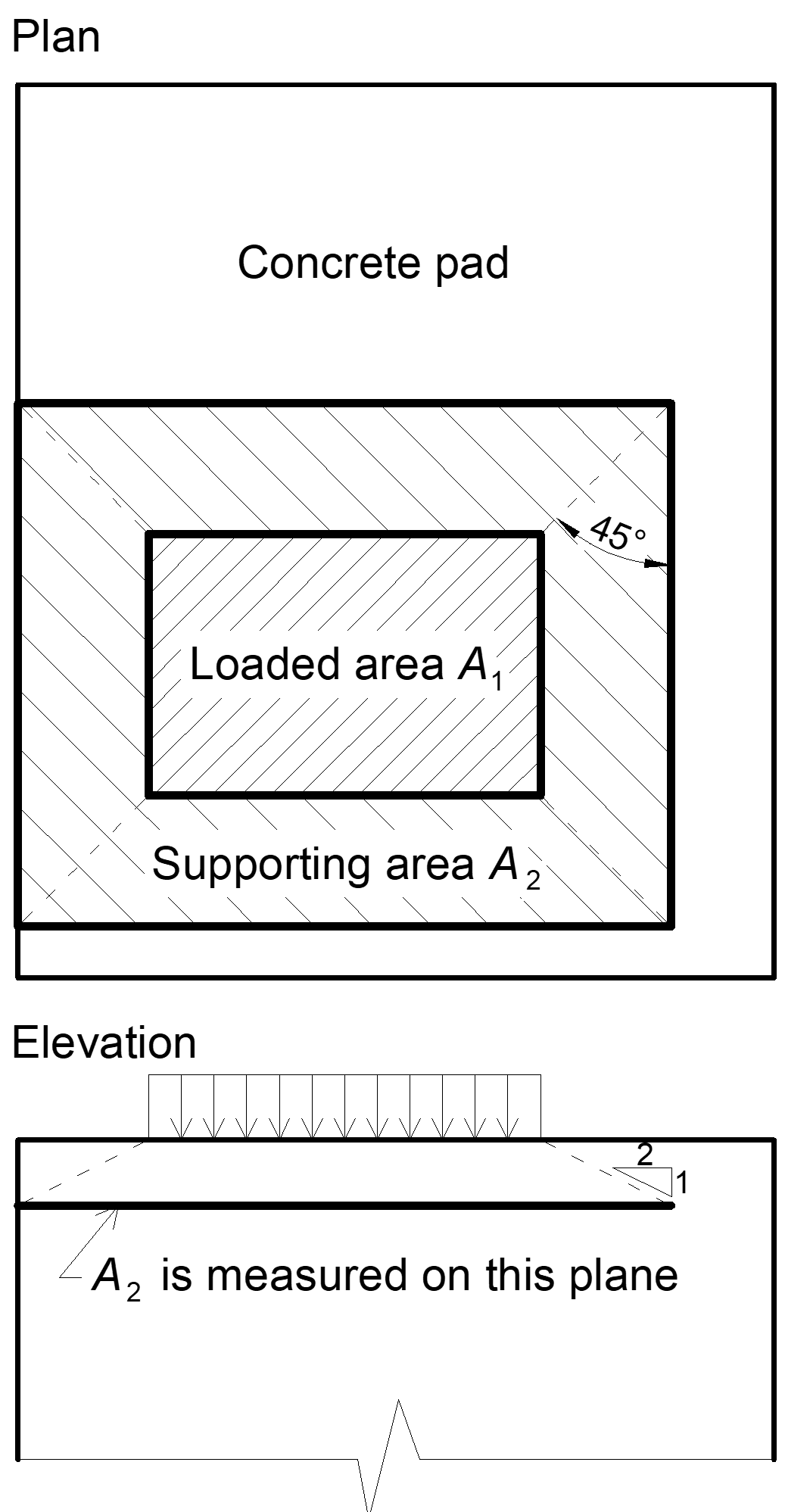 • A2 – concrete supporting surface (geometrically similar lower area of the frustum having its slopes of 1 vertical to 2 horizontal)