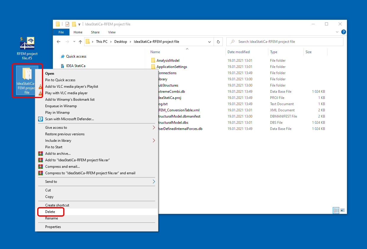 Note: For Tekla Structures, the IDEA StatiCa folder is located inside the Tekla Structures project folder with the same name.