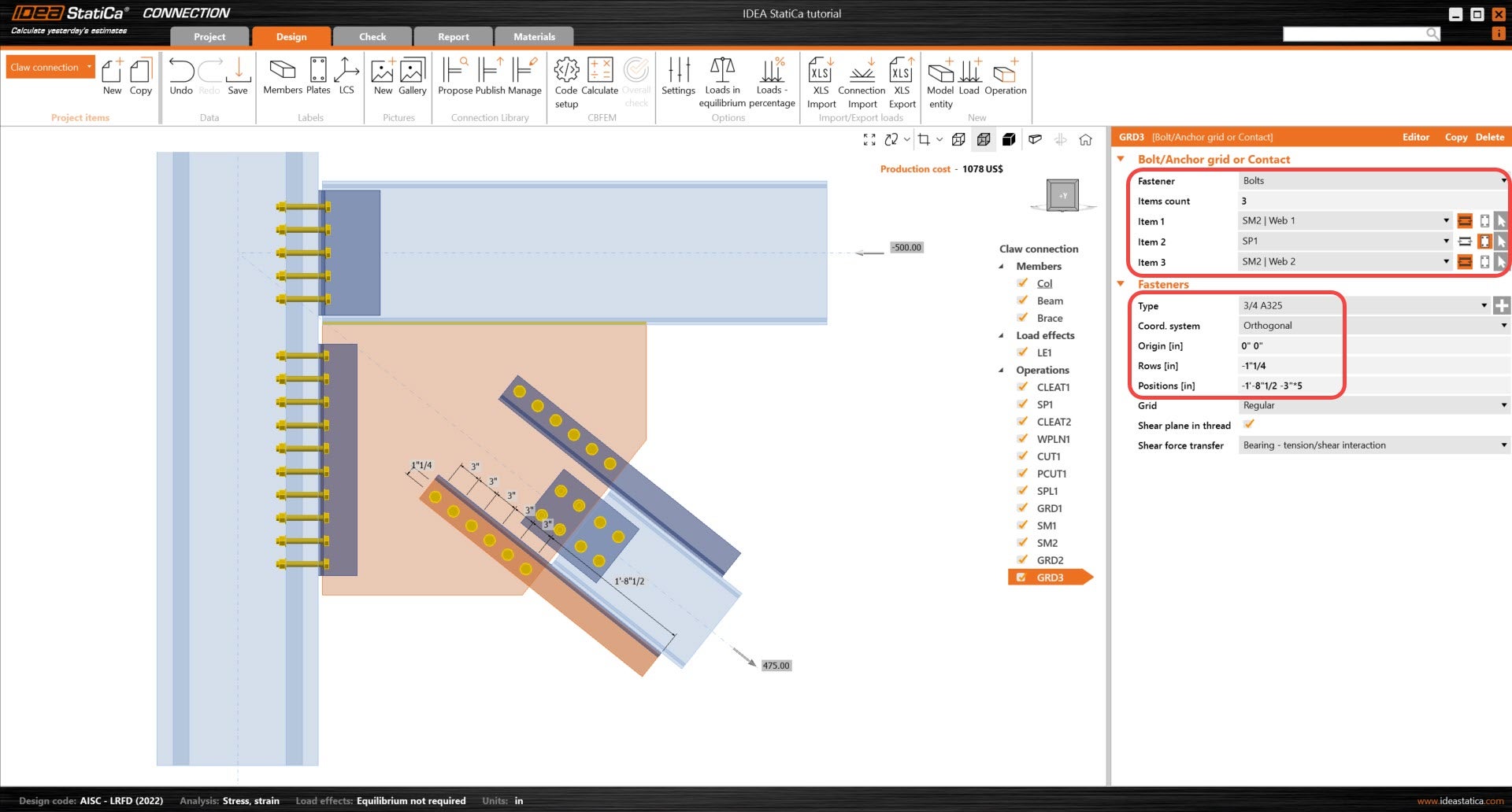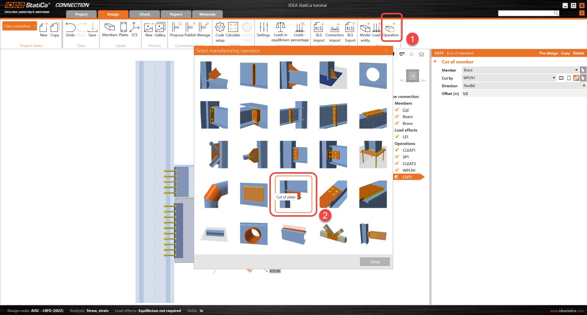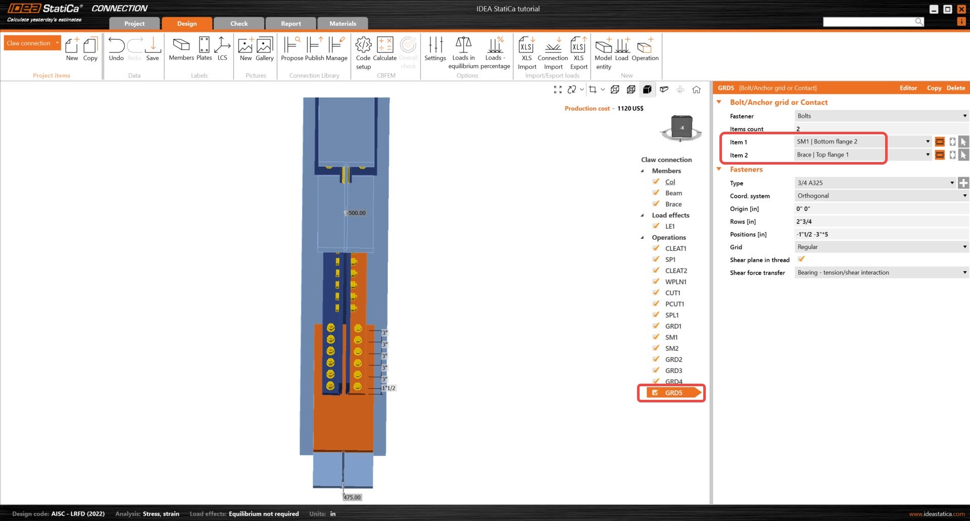 Learn how to use IDEA StatiCa Connection to design and code-check a structural steel joint, an example is a Claw angle on WF bracing connection. The tutorial will demonstrate how to create a connection that is not predefined in the manufacturing operations.