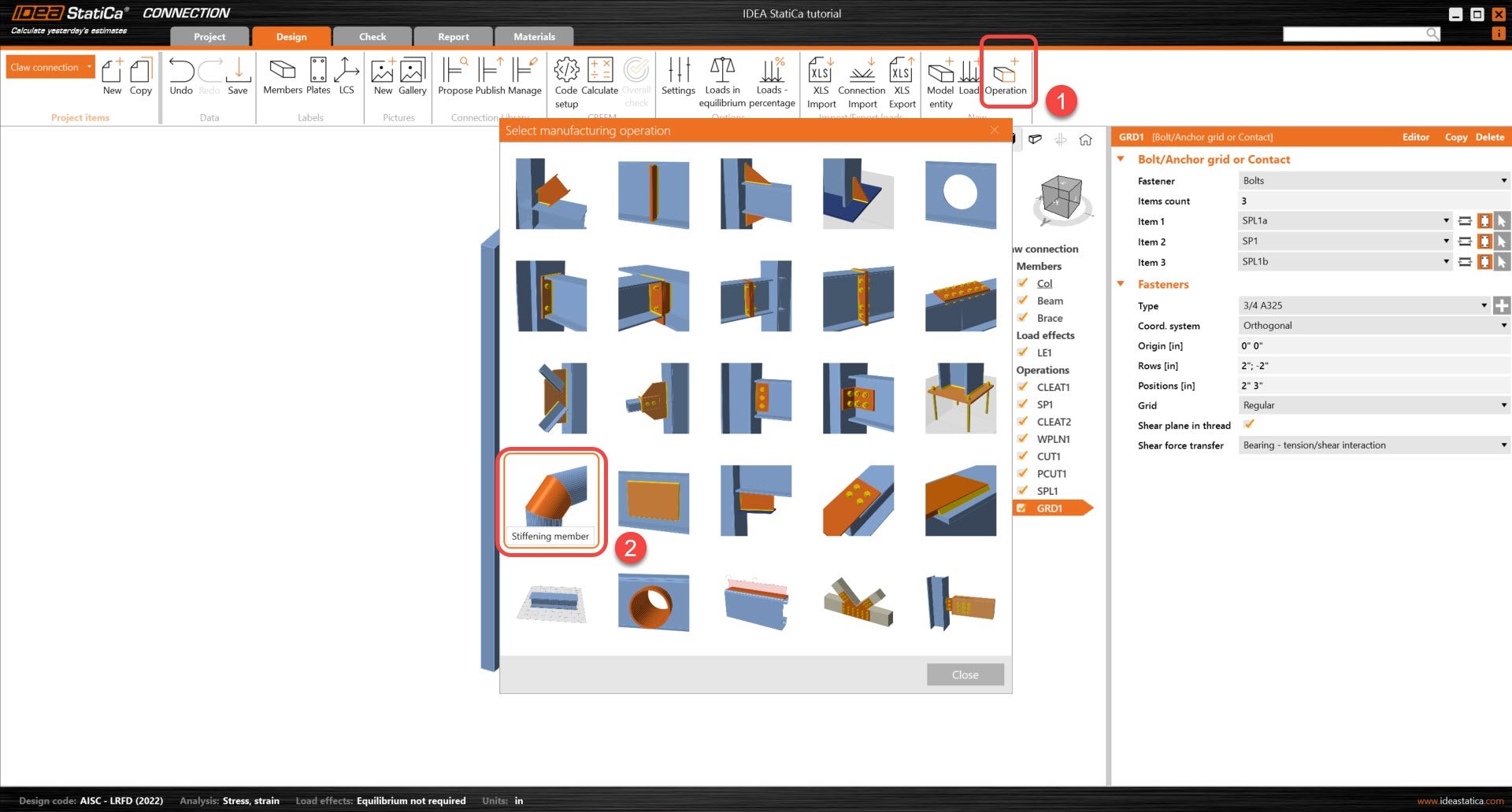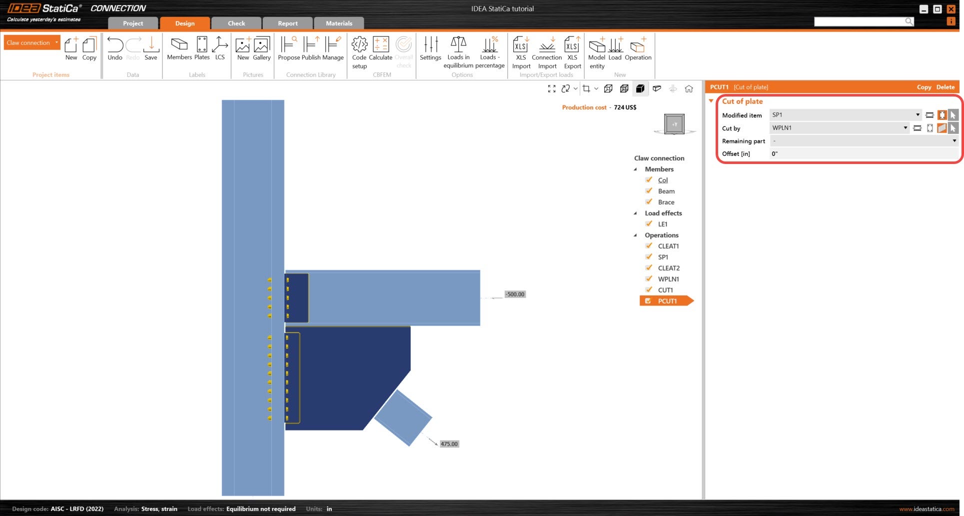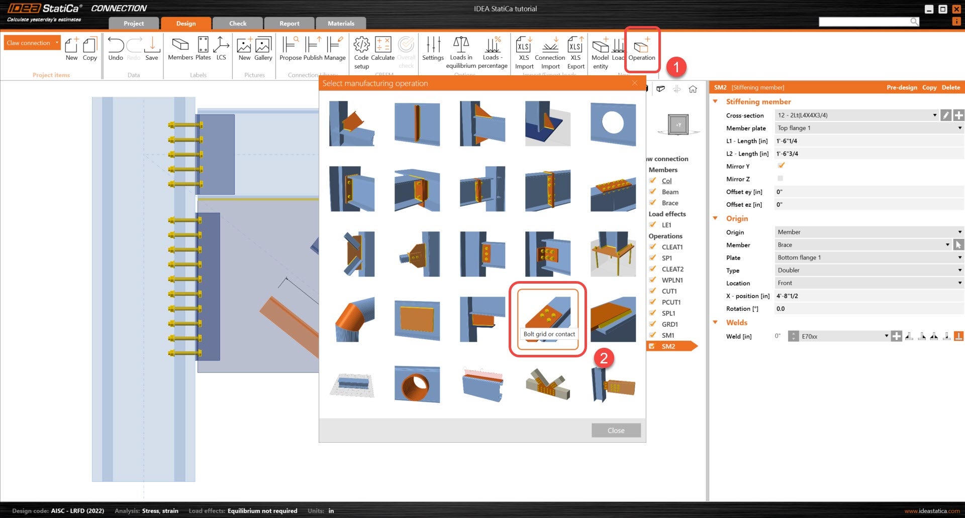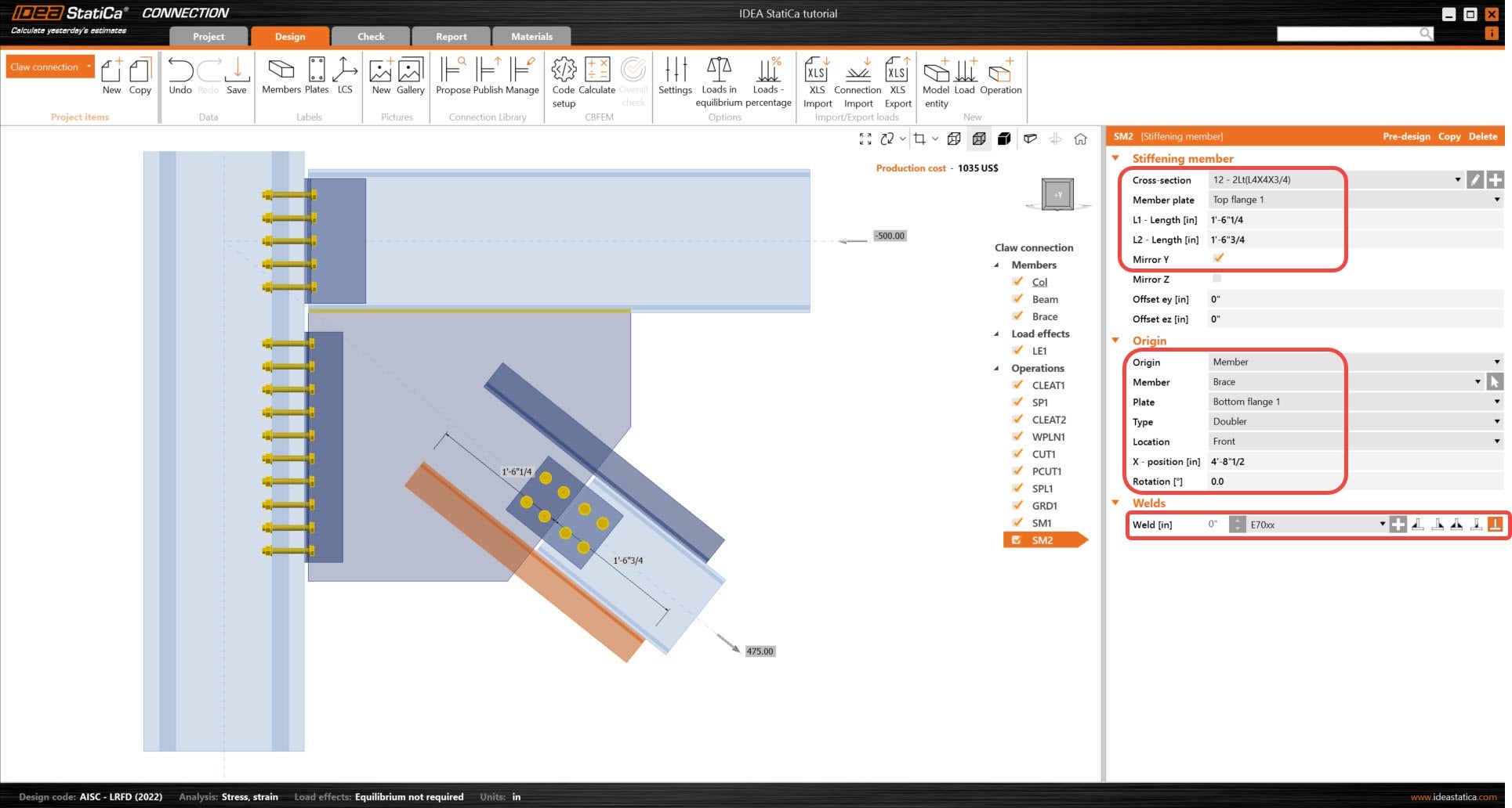 Learn how to use IDEA StatiCa Connection to design and code-check a structural steel joint, an example is a Claw angle on WF bracing connection. The tutorial will demonstrate how to create a connection that is not predefined in the manufacturing operations.