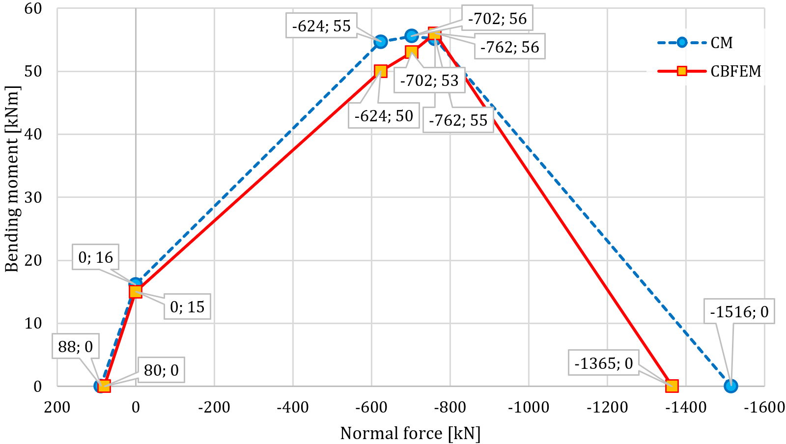 Tab. 8.4.2 Interaction diagram comparison of CBFEM and CM
