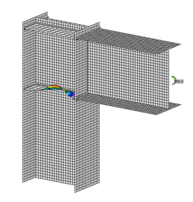 \[ \textsf{\textit{\footnotesize{Fig. 6.3.1 Research FEA model of a beam-to-column joint with slender column web stiffener}}}\]