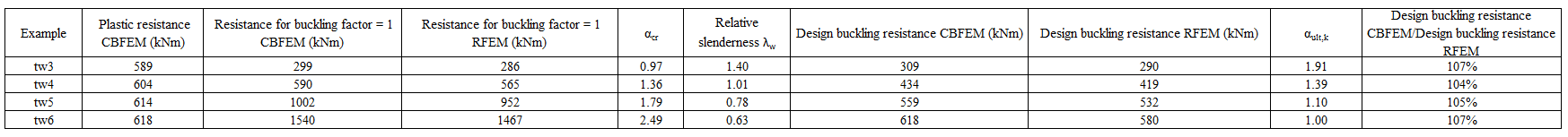 Tab. 6.3.2 Design resistances and critical loads of RFEM and CBFEM