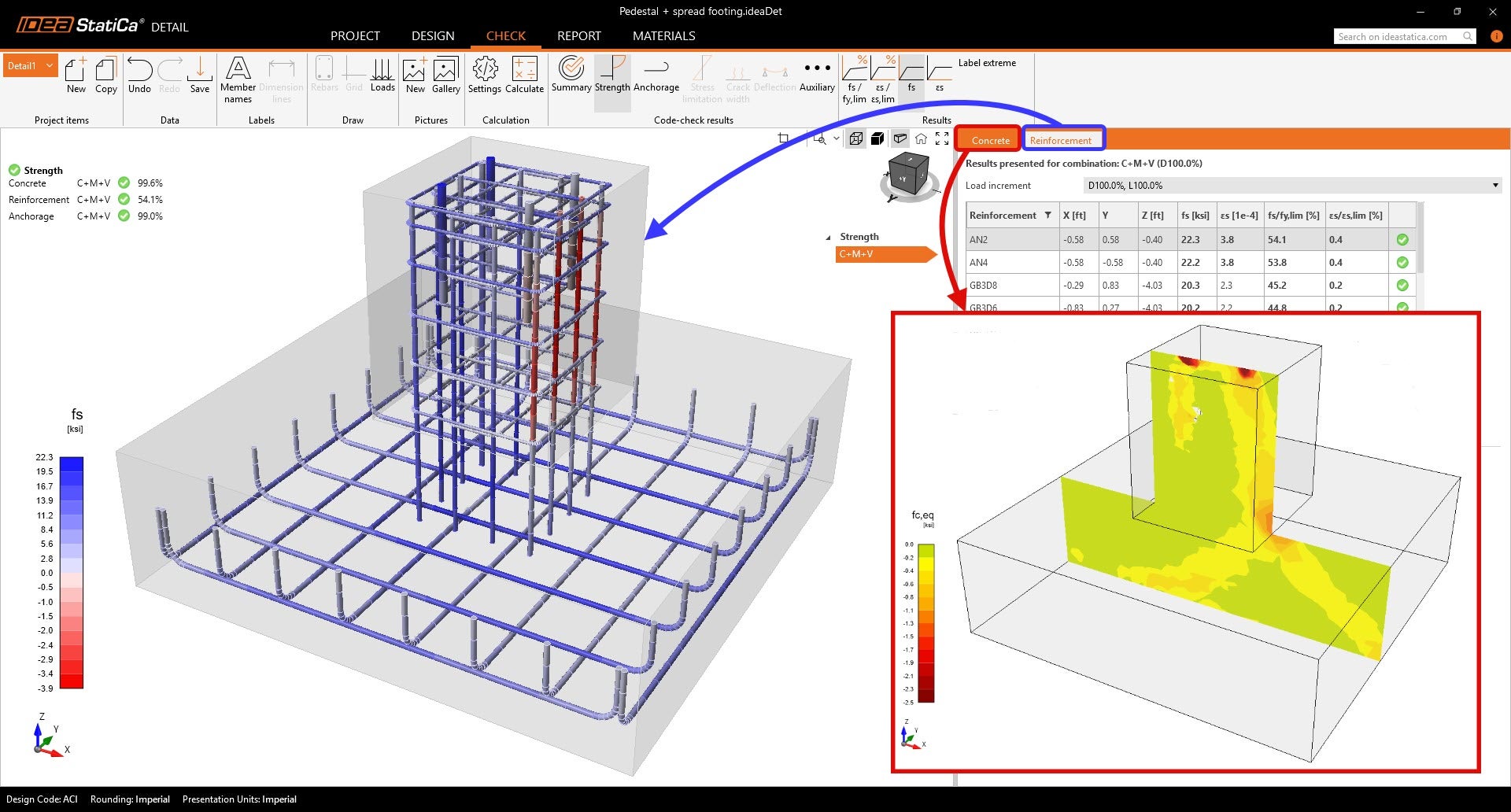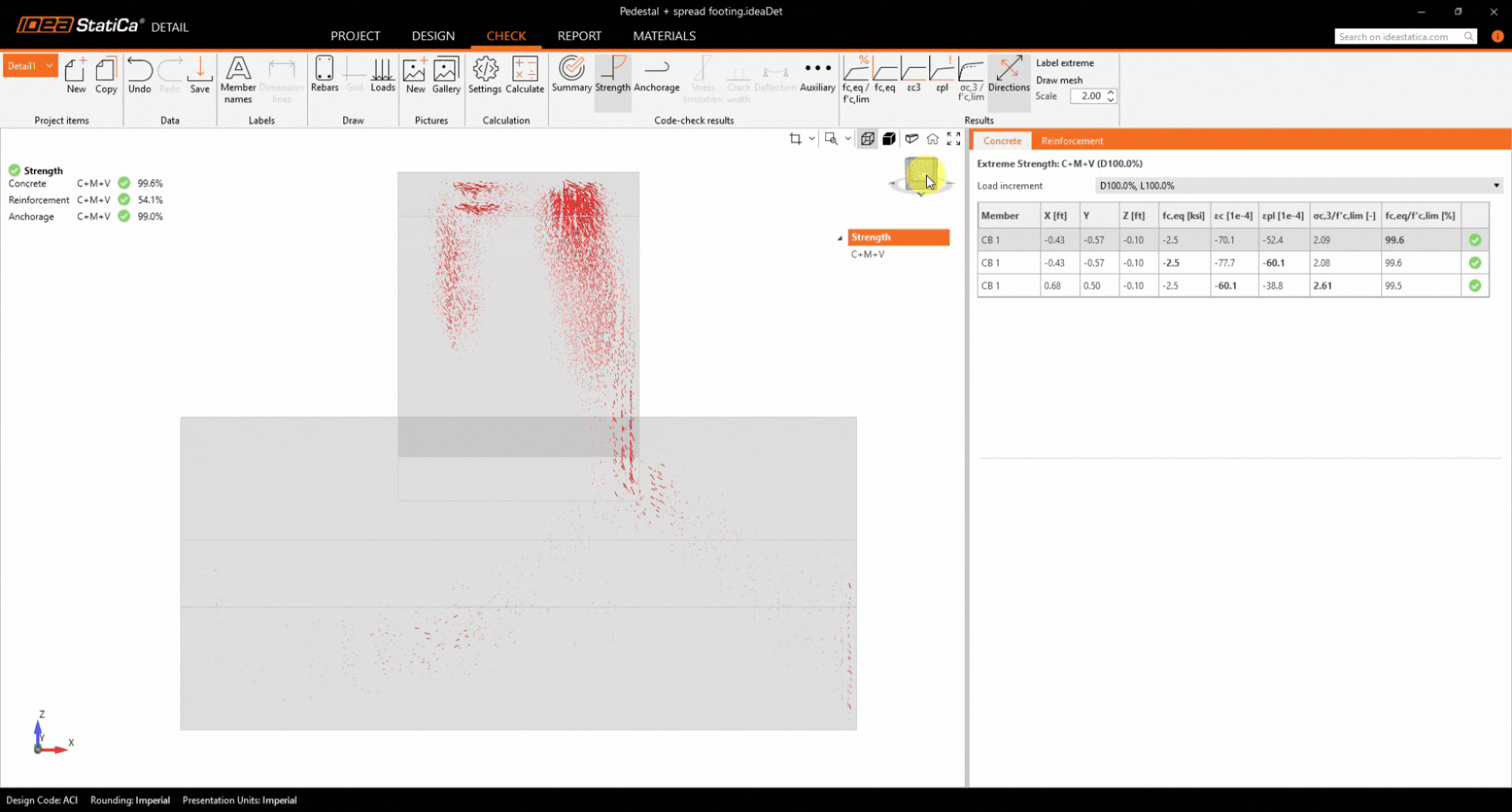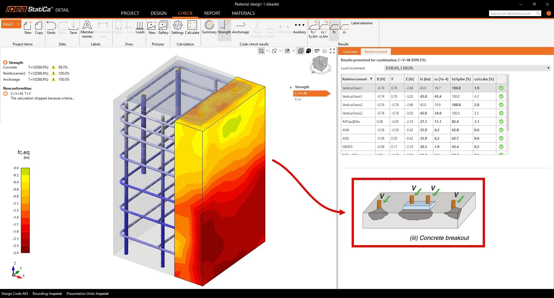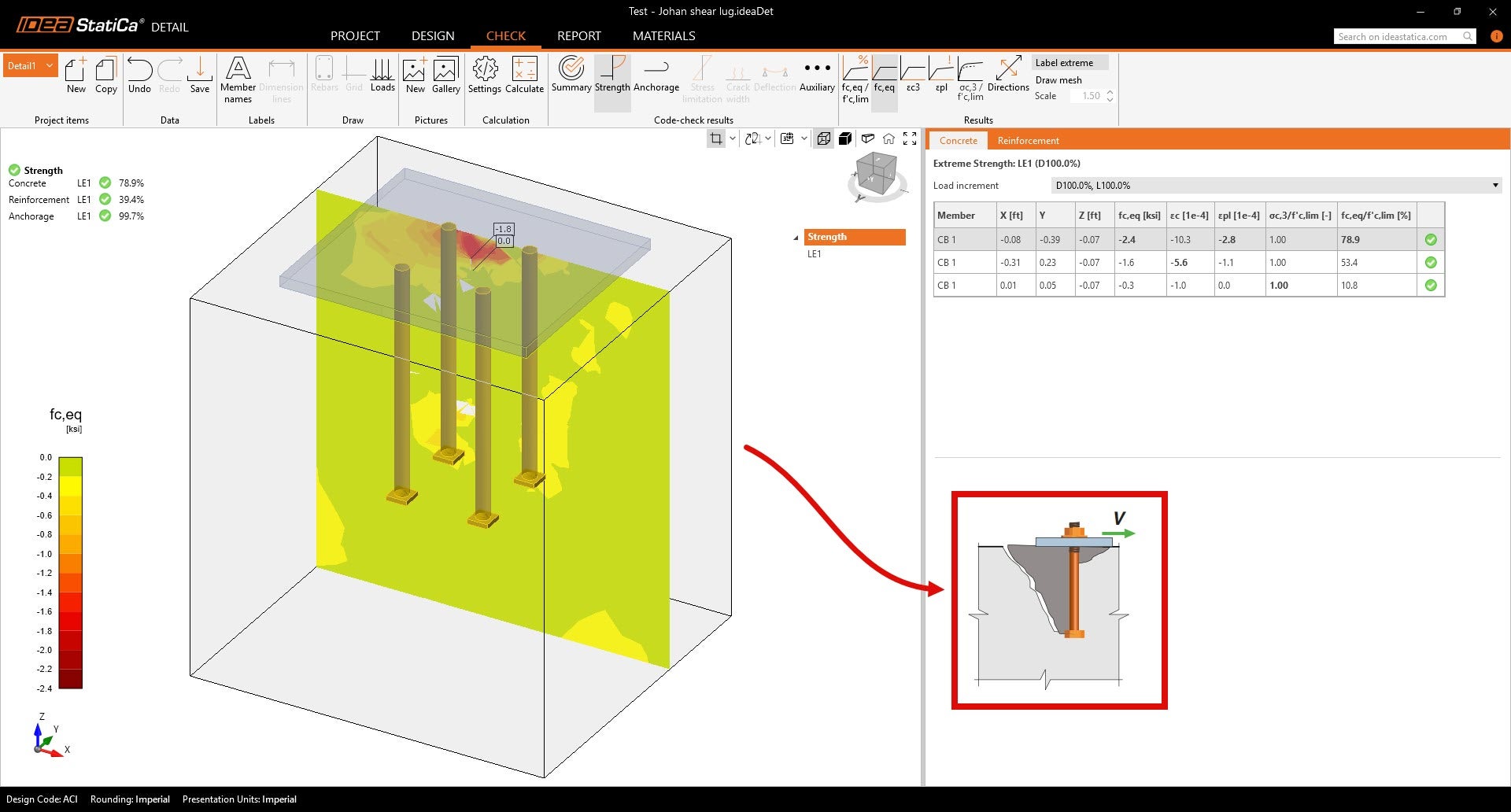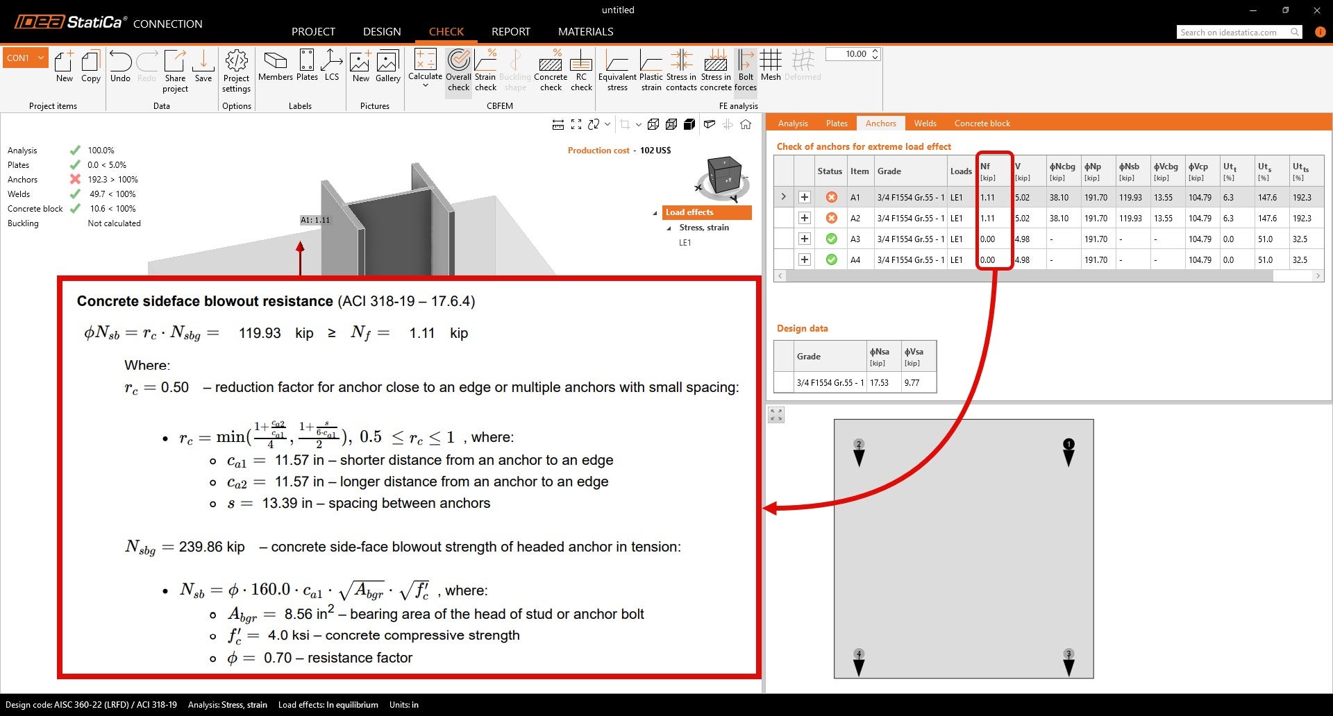 Complete code-check of anchors and concrete block in Detail 3D (ACI)