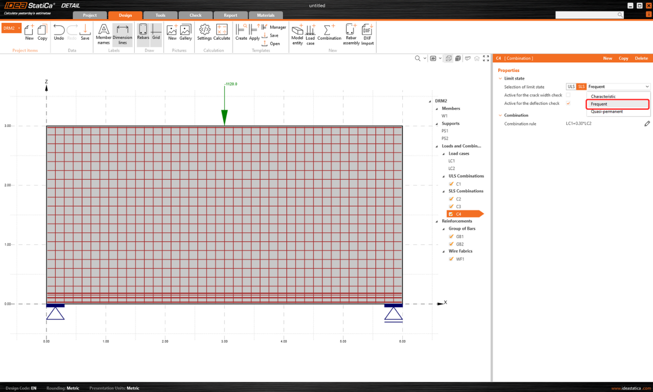 As already mentioned, the Frequent combination provides a set of combinations for SLS alongside the Characteristic and Quasi-permanent combinations. Each combination has its own significance and is used for a specific check.