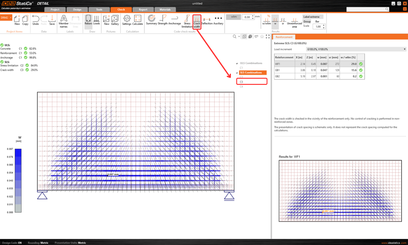 Therefore, the "Frequent" SLS combination type exists together with the other options for customizing checks and, consequently, the display of results. This allows the calculation to be tailored precisely according to the rules in national annexes and, depending on the calculated elements, even for specific cases of prestressed structures. Everyone now has the opportunity to fully utilize SLS code-checks in IDEA StatiCa Detail.