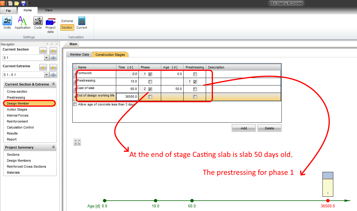 For the construction stage End of the design working life, change the Current Extreme to Stage 36500  and perform the same steps as above.