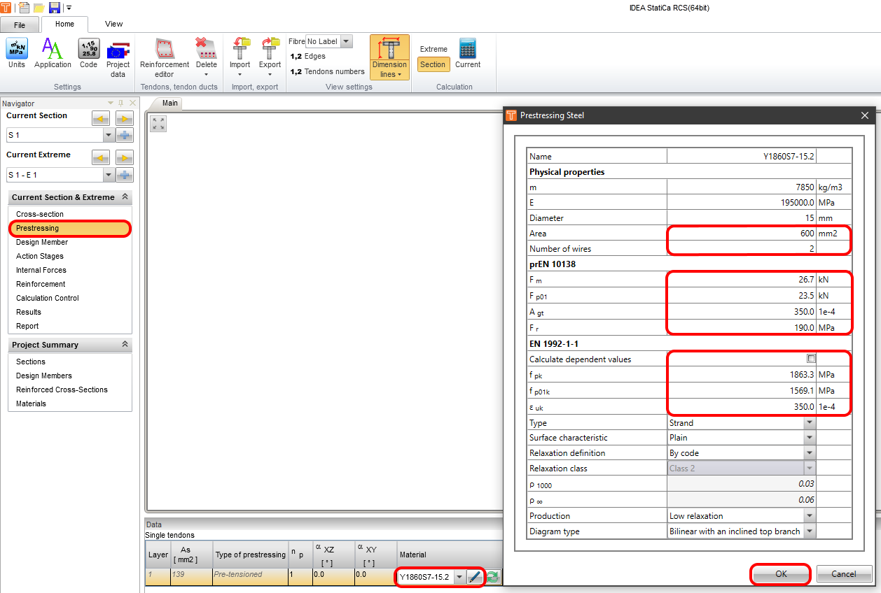 Launch IDEA StatiCa (download the newest version) and select the RCS  application. Create a new project and set the code for bridges EN 1992-2-2008-07. Select the Prestressed section design