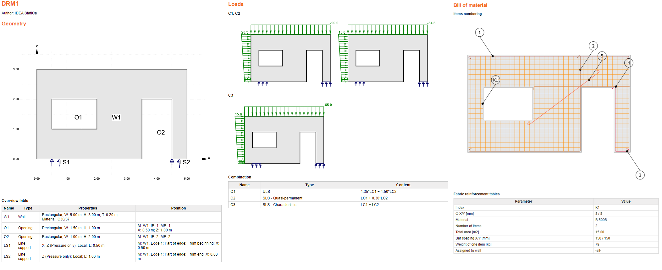 Start the definition of Geometry. Six items have already been created by the template: wall W1, two openings O1 and O2, and three line supports LS1-3.
