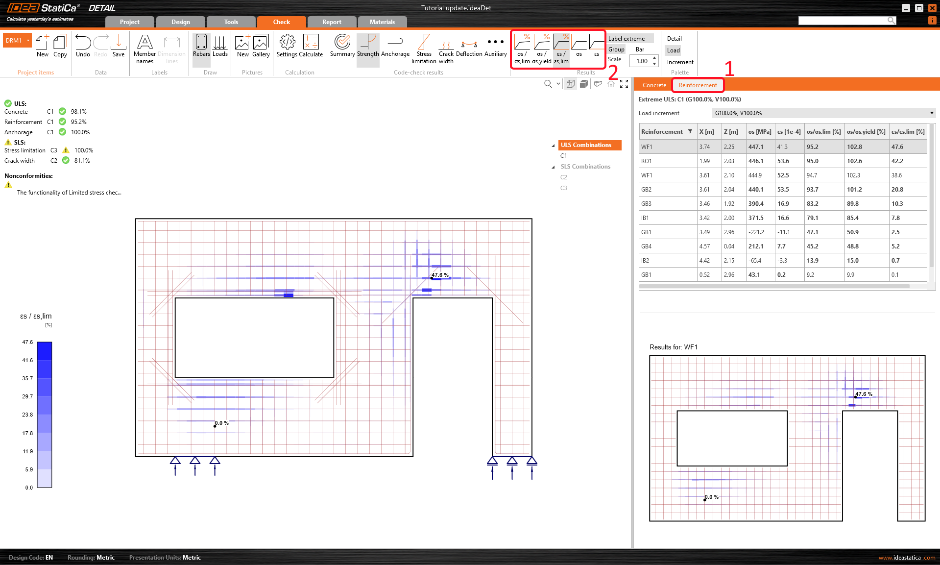 Before you start with the reinforcement definition, there are two design tools that can help you to understand the behaviour of the structure.