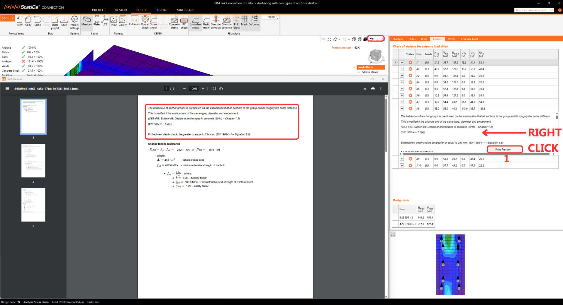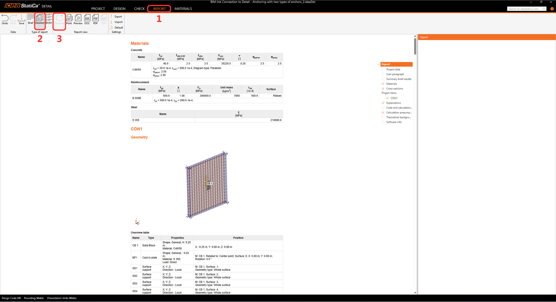 Finally, go to Report -> Detailed -> Generate. IDEA StatiCa offers a fully customizable report to print out or save in an editable format.