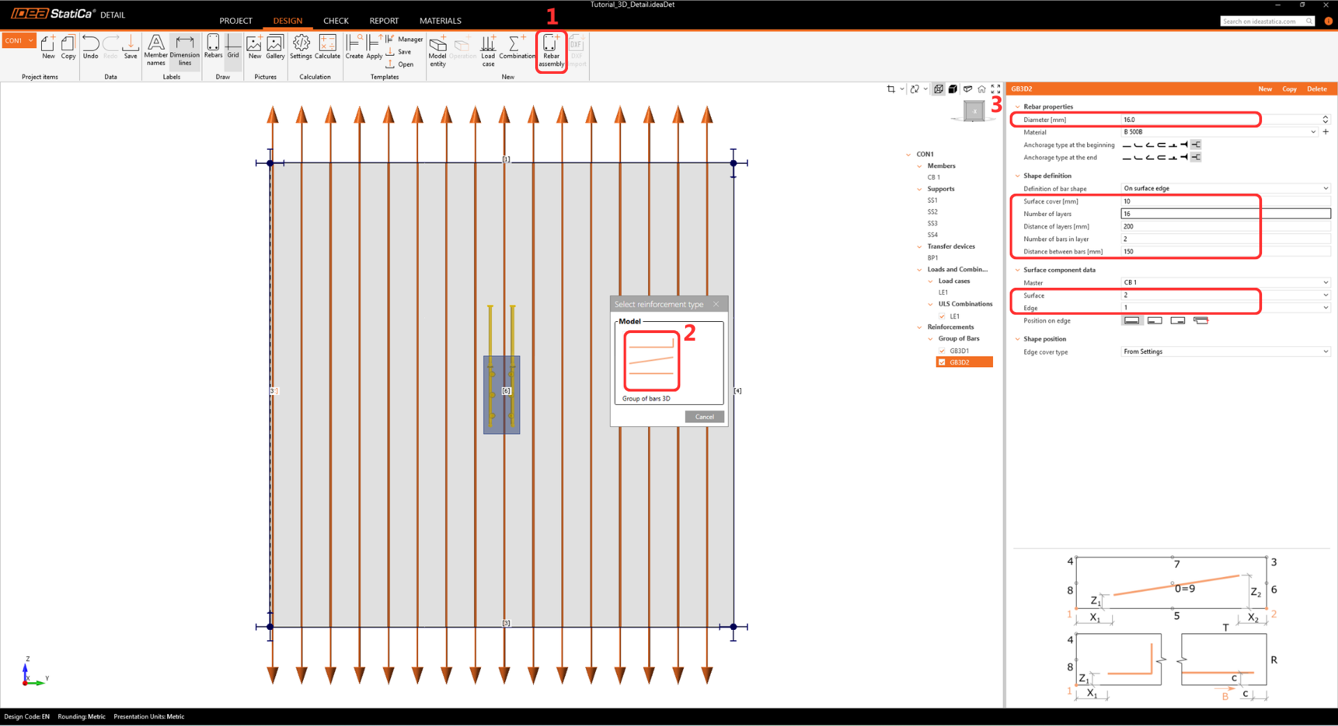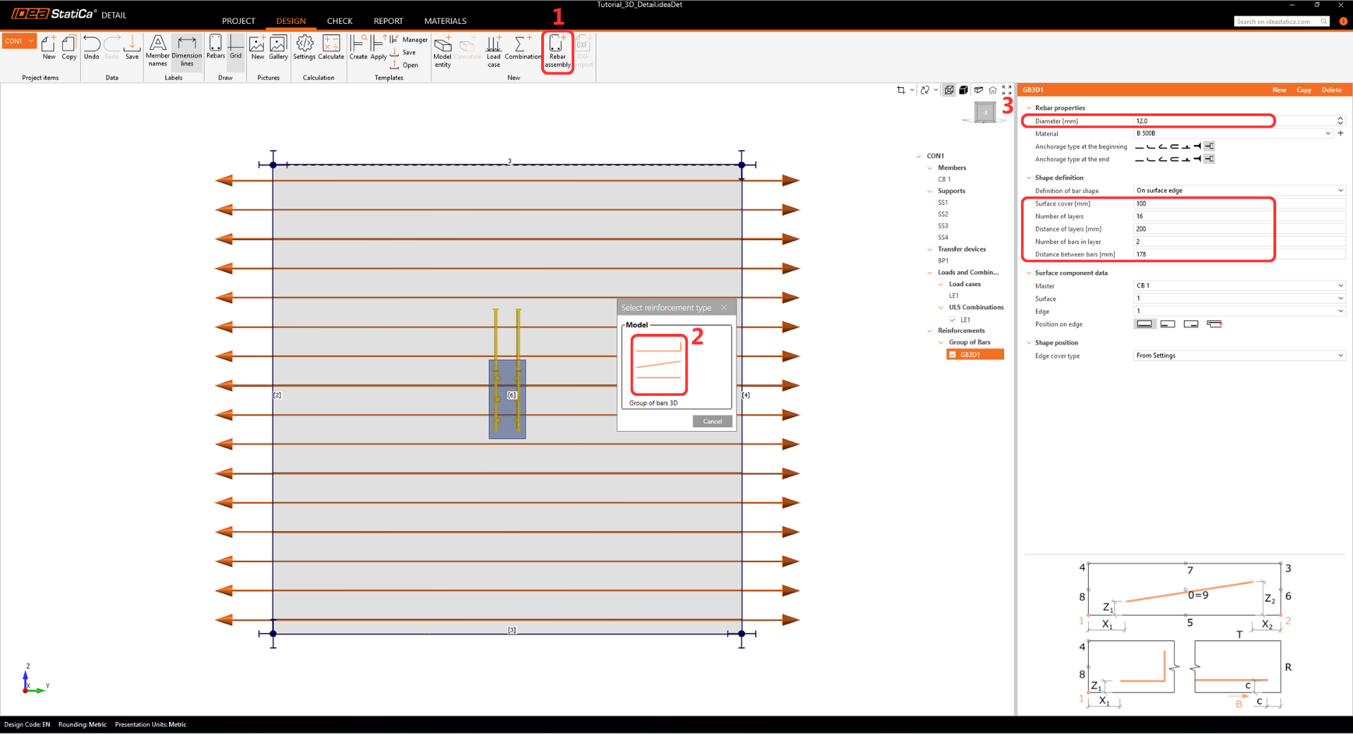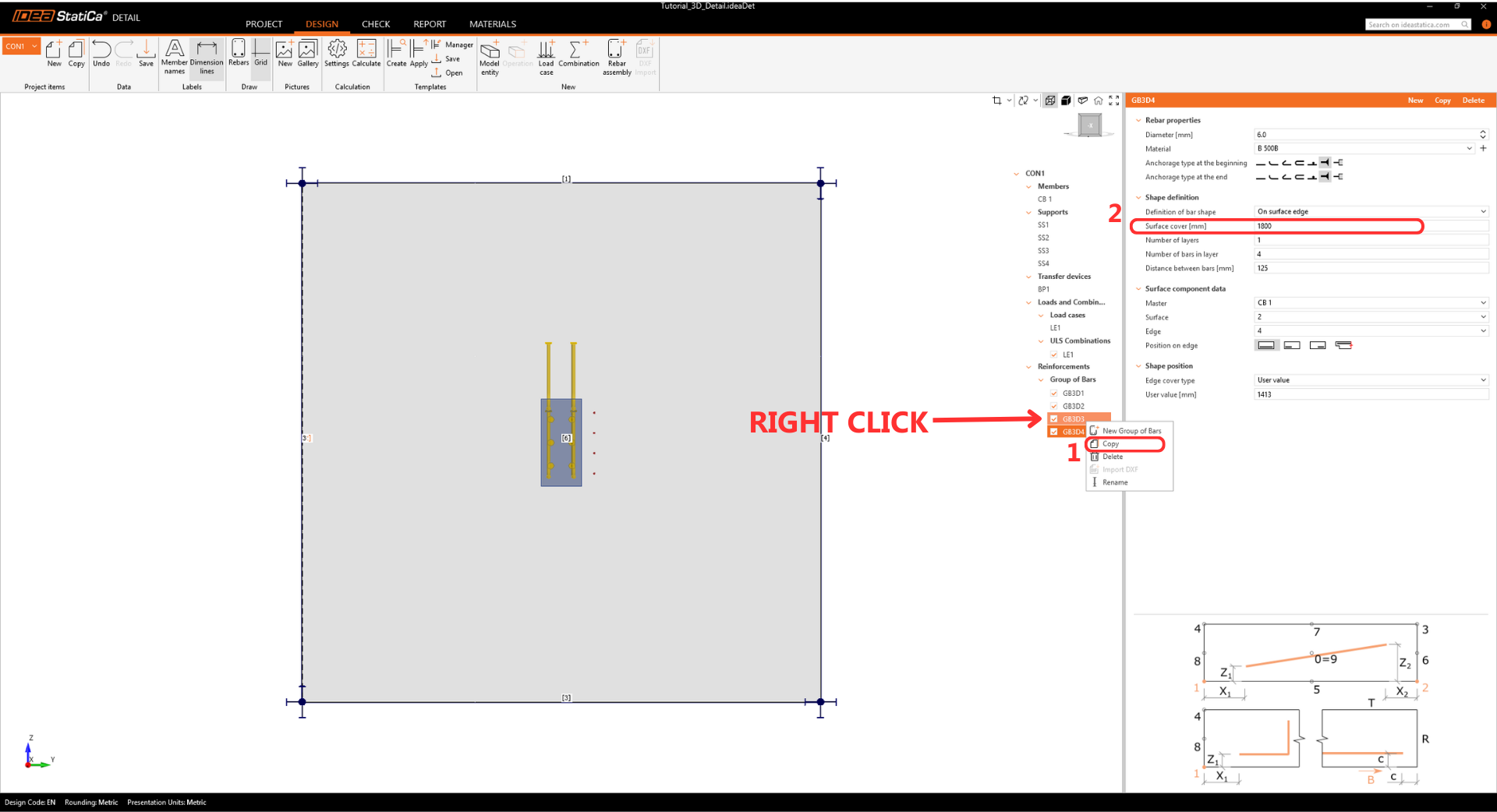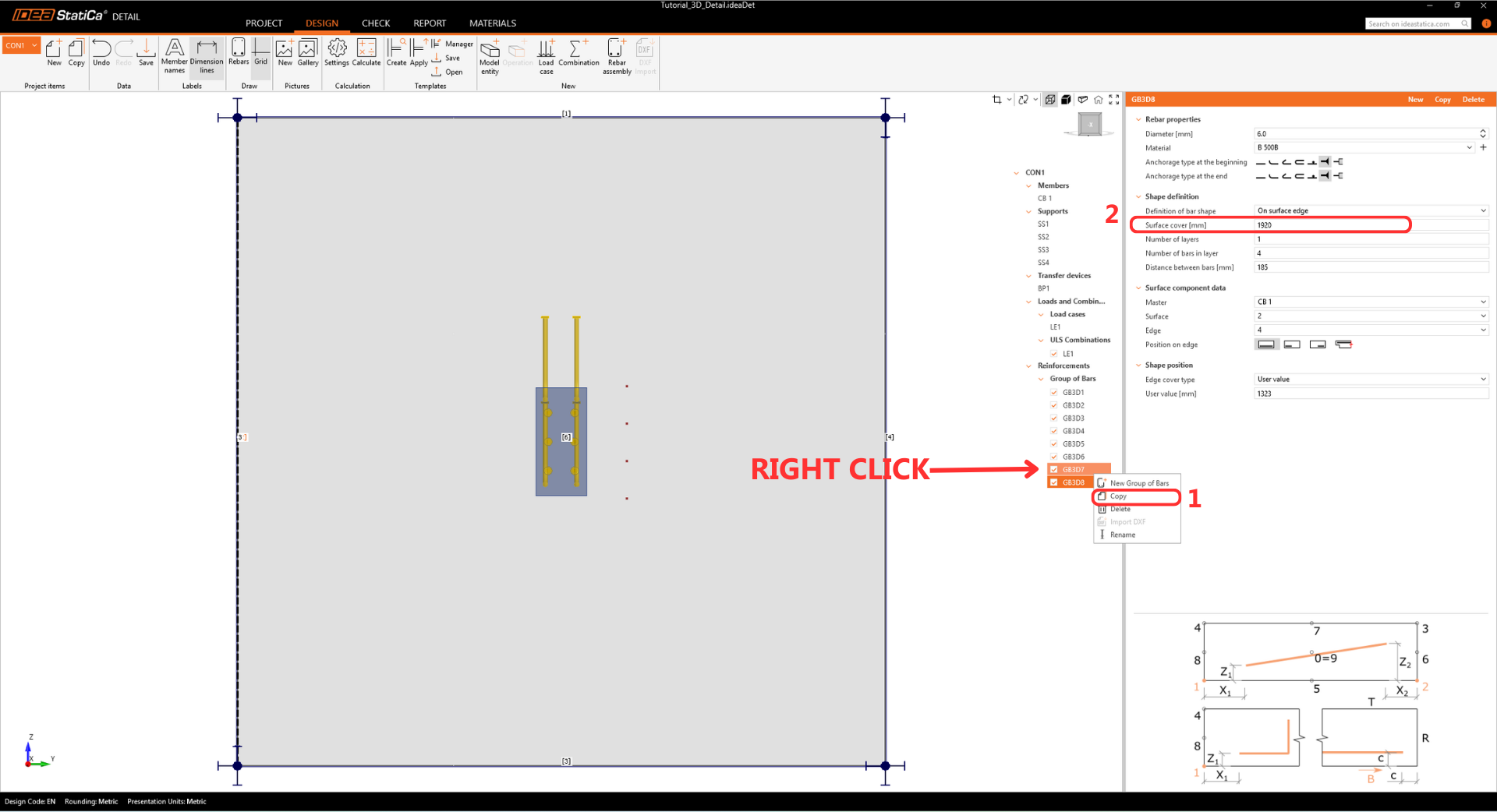 Next, insert a new Group of bars 3D (or copy the existing one) to create the continuous longitudinal horizontal reinforcement (main reinforcement at both surfaces).