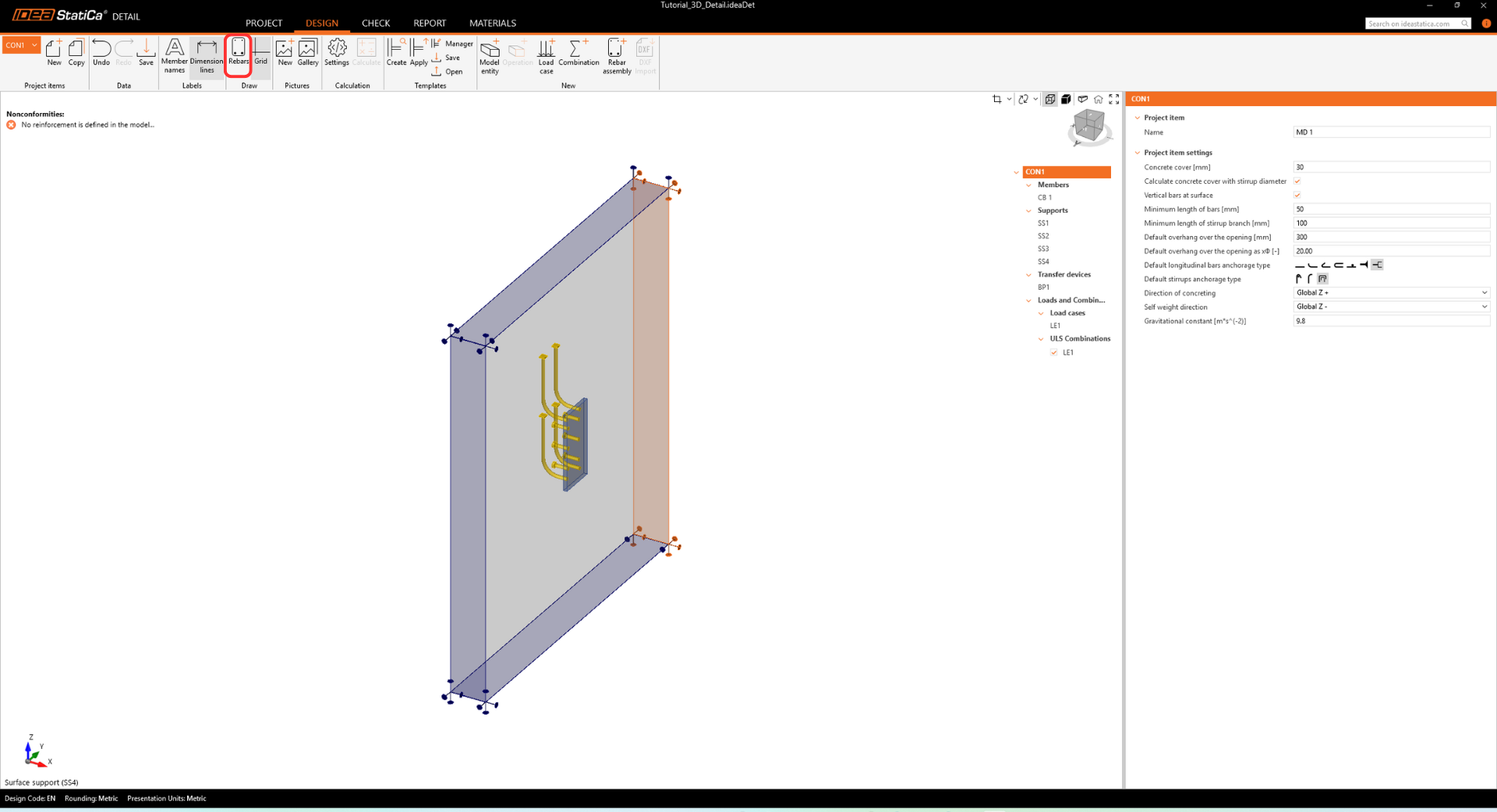 - This limitation can be easily resolved in Detail 3D to confirm the reinforcement efficiency. If checking manually, assume zero concrete capacity and ensure the reinforcement area covers the total reported forces.