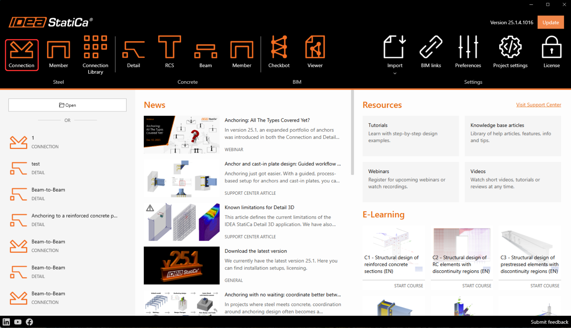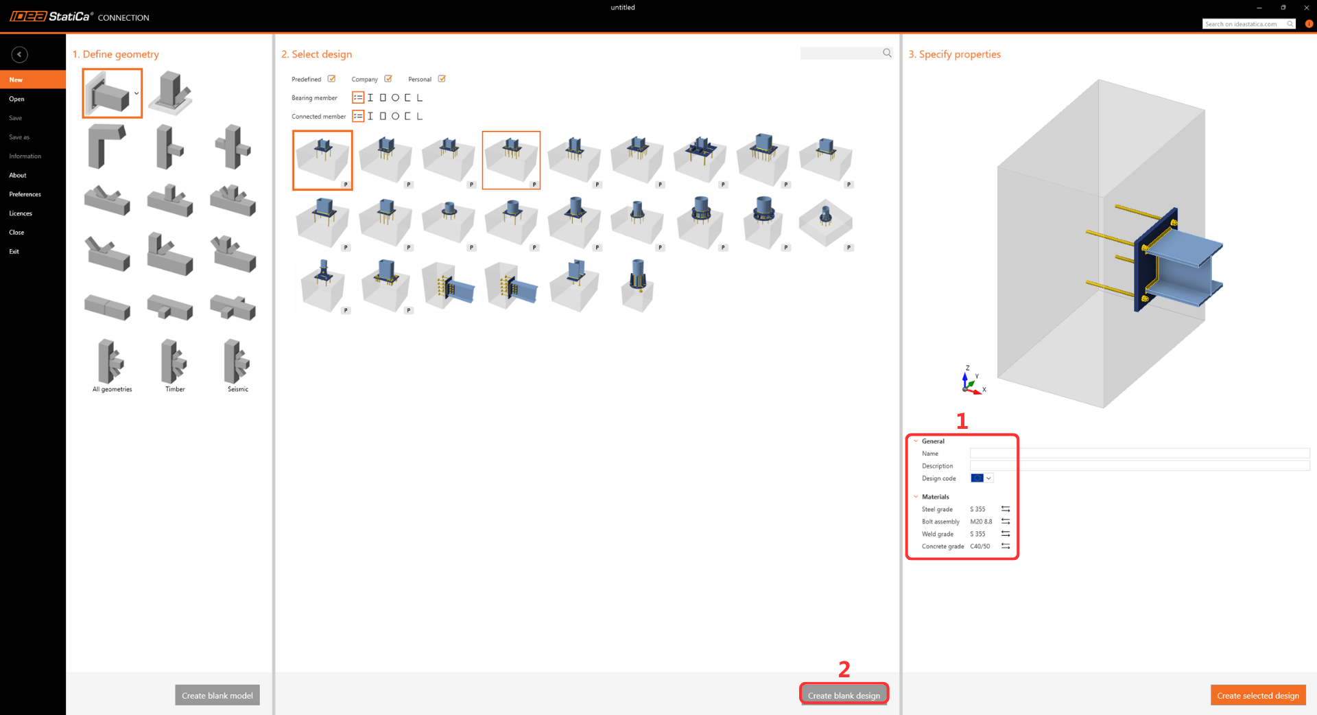 Run IDEA StatiCa Connection. Everything starts on the Steel tab.