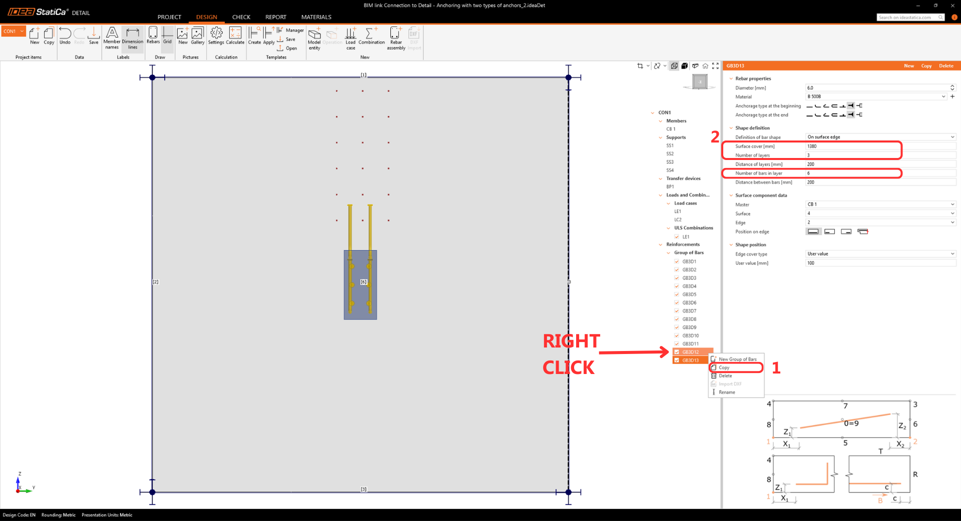 Add another item by selecting Rebar-Assembly > Group of bars 3D again, and modify the Properties.