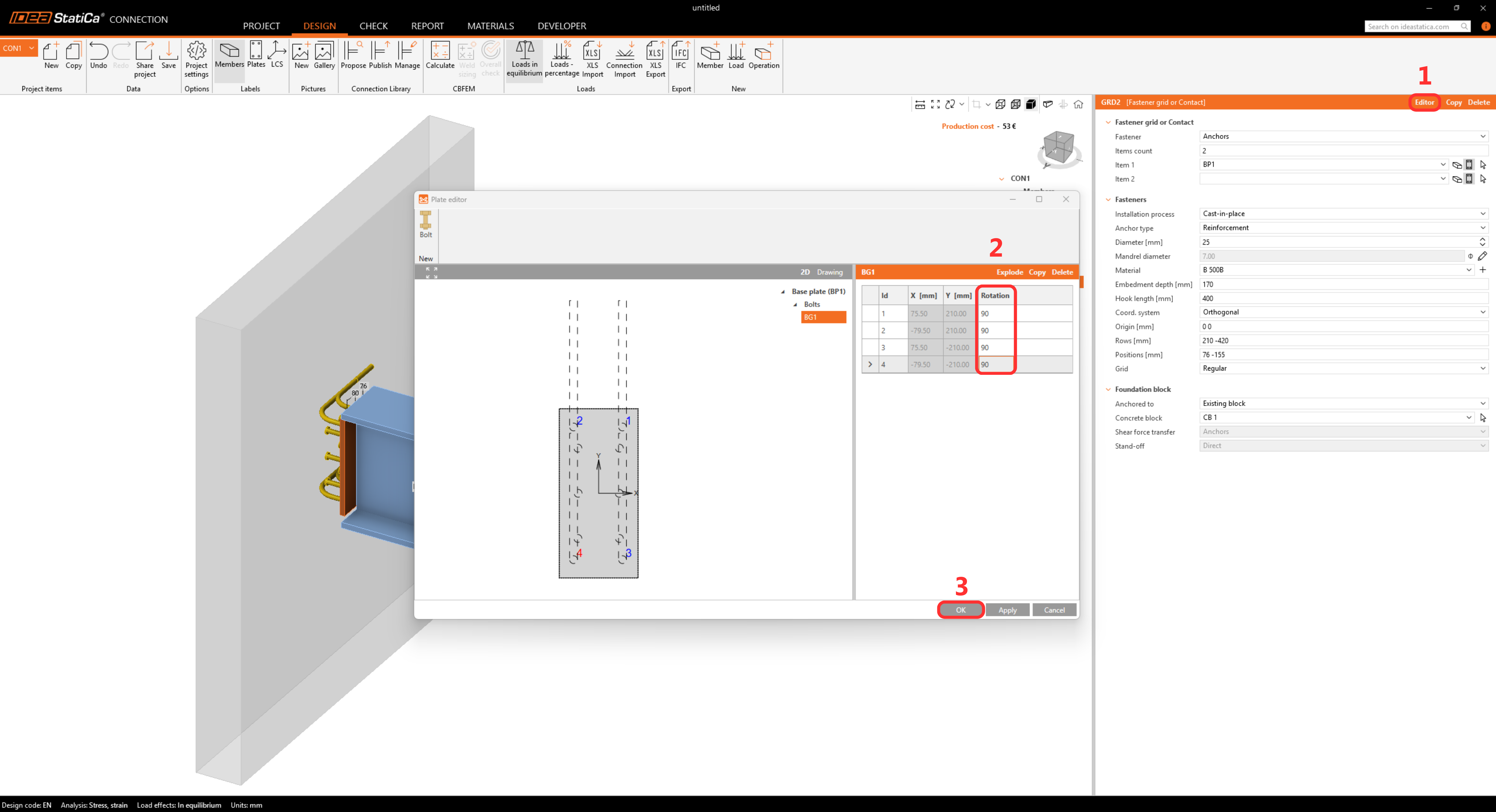 Change the rotation of reinforcement in operation GRD2 by selecting Editor.