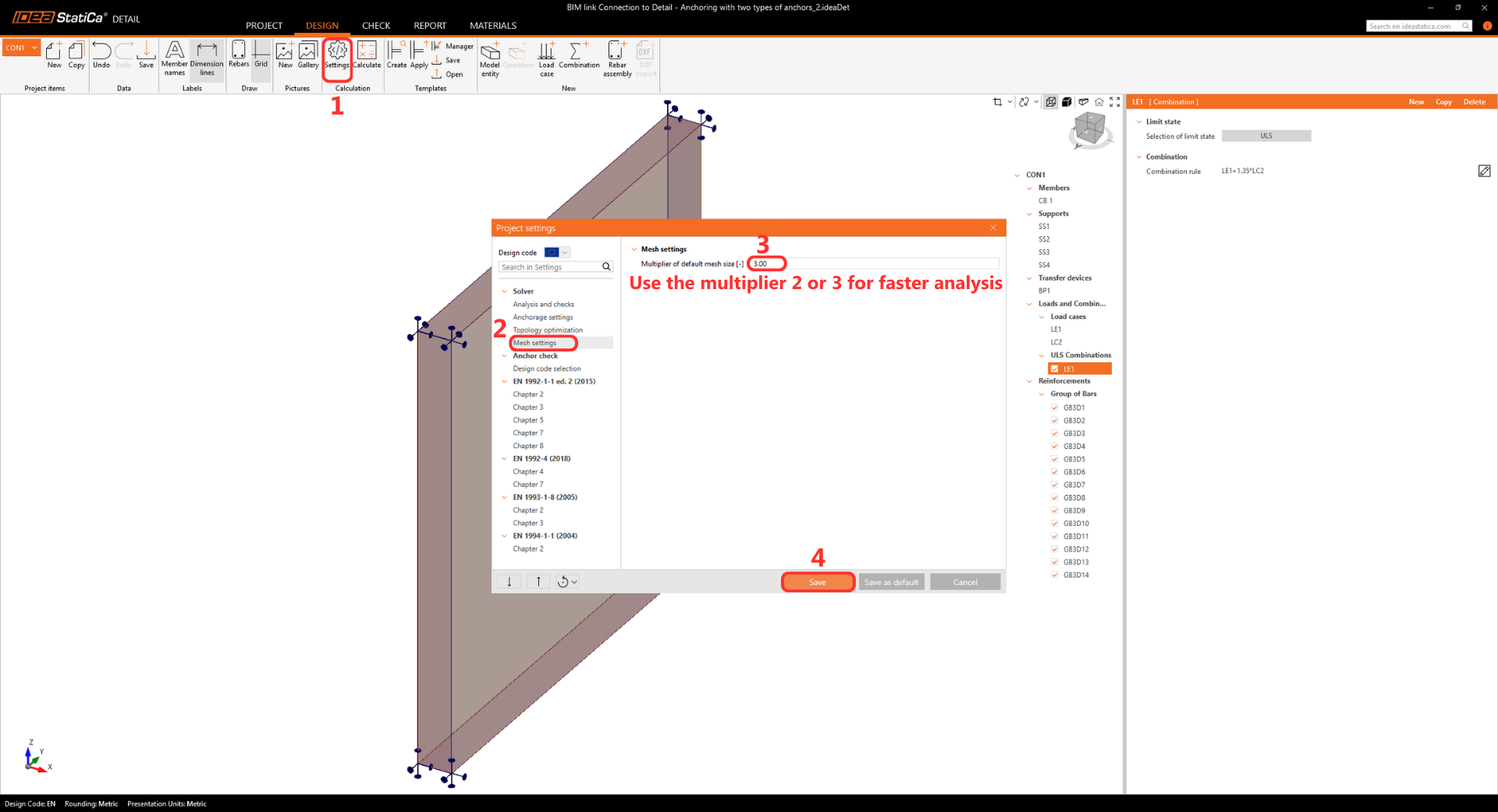 Before running the analysis, we highly recommend changing the Mesh multiplier to 2 or 3 to speed up the calculation. While this step is not mandatory, it significantly reduces computational time and helps detect potential divergence issues early. If the analysis runs smoothly, you can then revert the Mesh multiplier to 1 for the final results.