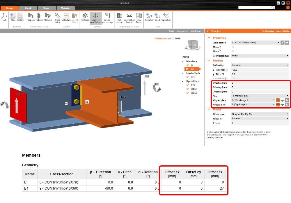 The chosen alignment type is now taken into account when displaying the table of members' offsets. The geometry table in the report calculates the total offset in the global coordinates.