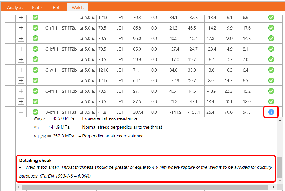 The Detailing check in IDEA StatiCa Connection allows engineers to have a better overview of the design and code-check of bolts and welds thanks to thorough information and recommendations according to Eurocode provided in Check tables as well as in the Report.