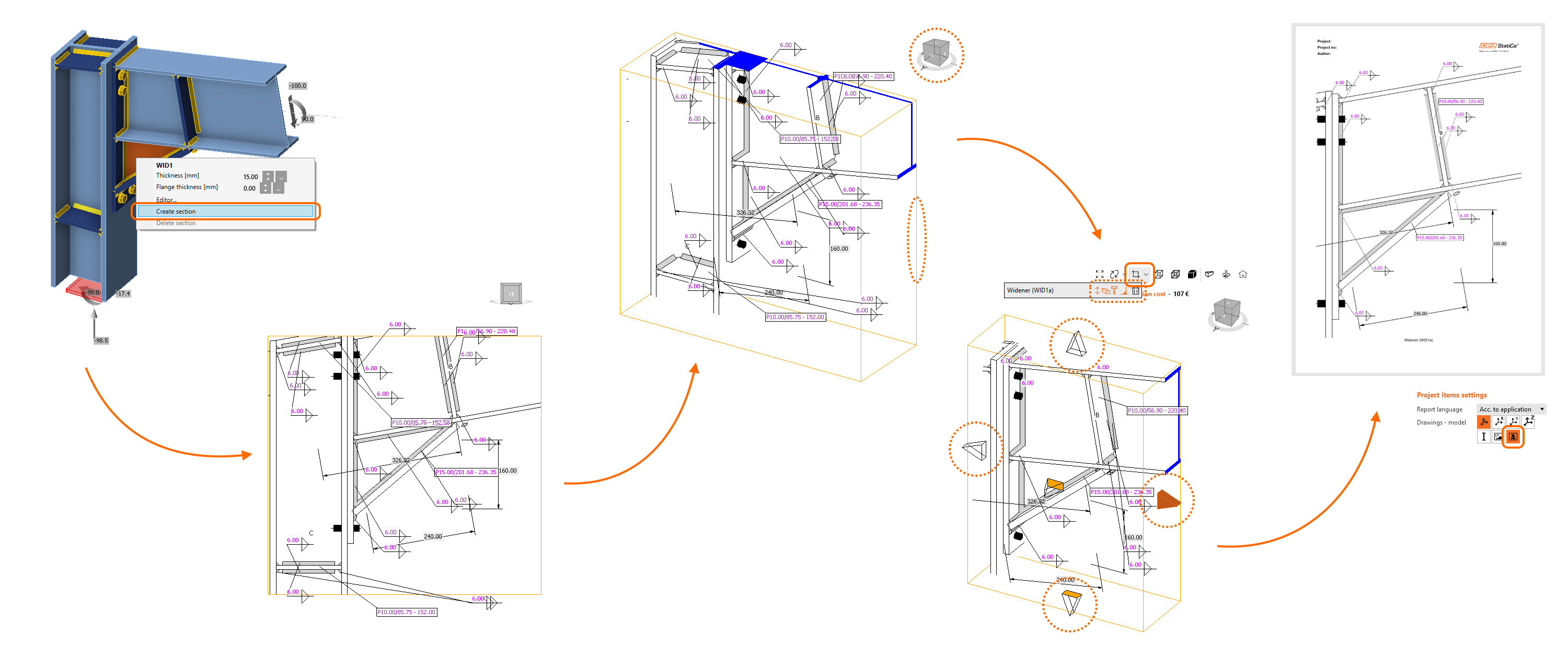 2D drawings, named user-defined sections in the Connection app, are one of the most common ways to provide details of connection design.