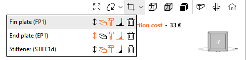 - In the menu above the 3D scene, you can select which entities will be included in the section view.