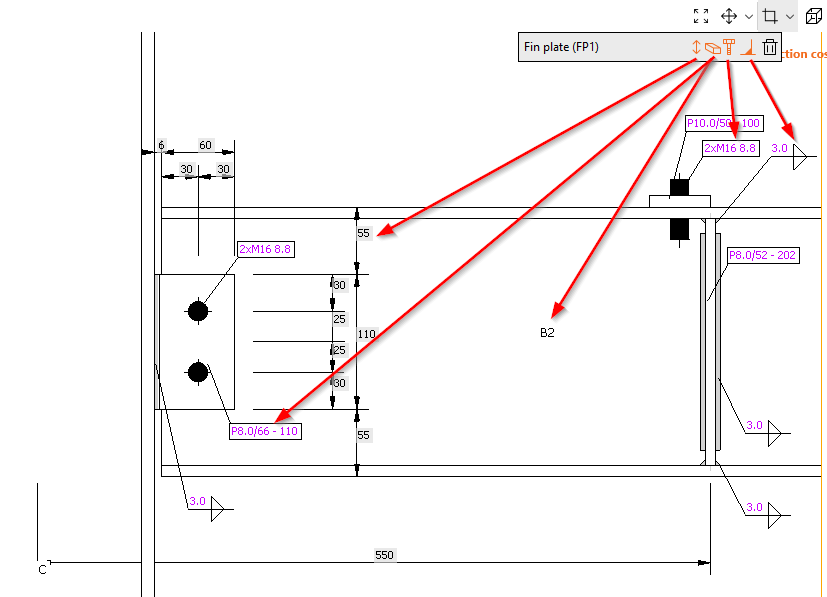 Annotations in key manufacturing operations such as fin plate, widener, stiffener, and gusset plate, help streamline the design process and eliminate sketch overlaps. Repositioning annotations, adding missing dimensions, and correcting inaccuracies avoid the risk of unclear sketches and incomplete details.