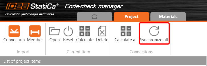 Synchronize all - IDEA StatiCa detects changes in all already imported entities (changes in thickness, changes in cross-section, modification of properties of welds, bolts, etc.) and updates the project in IDEA StatiCa Connection.