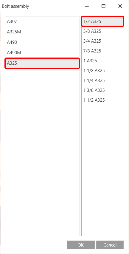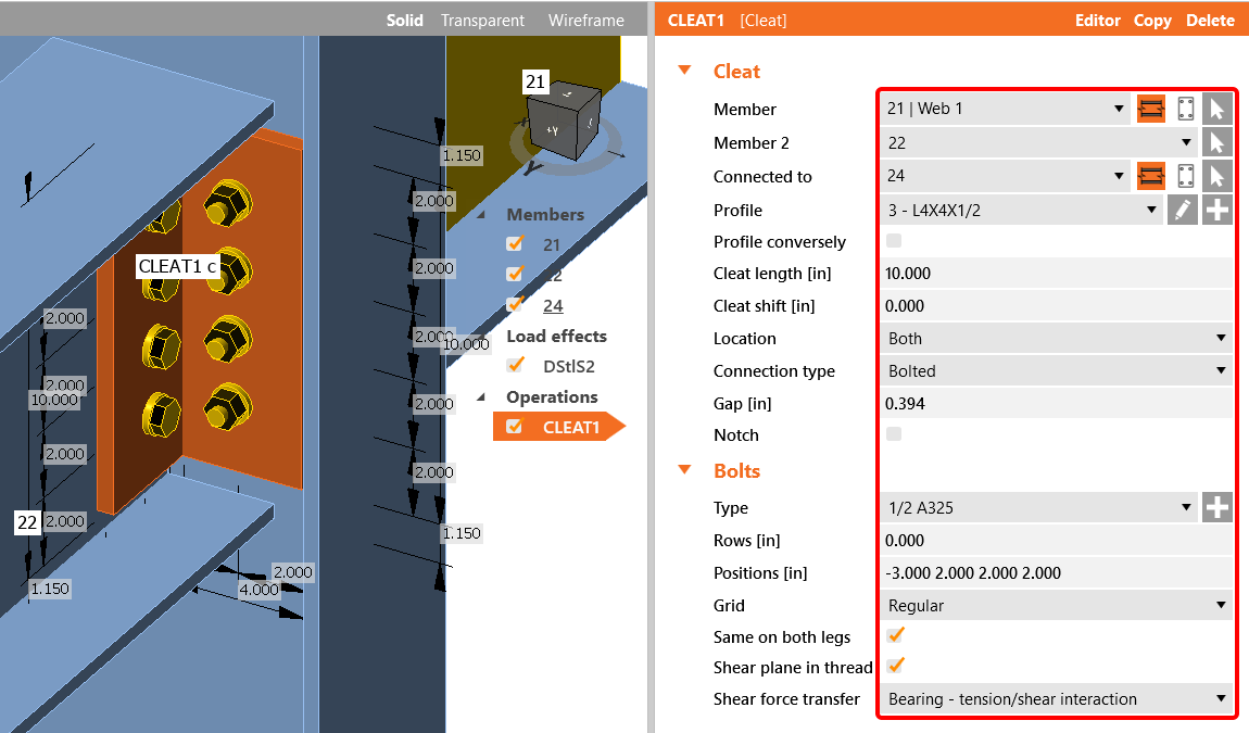 All values can be reviewed in detail in the tables and 2D windows. For example, to display the check of bolts, select the Bolts tab.