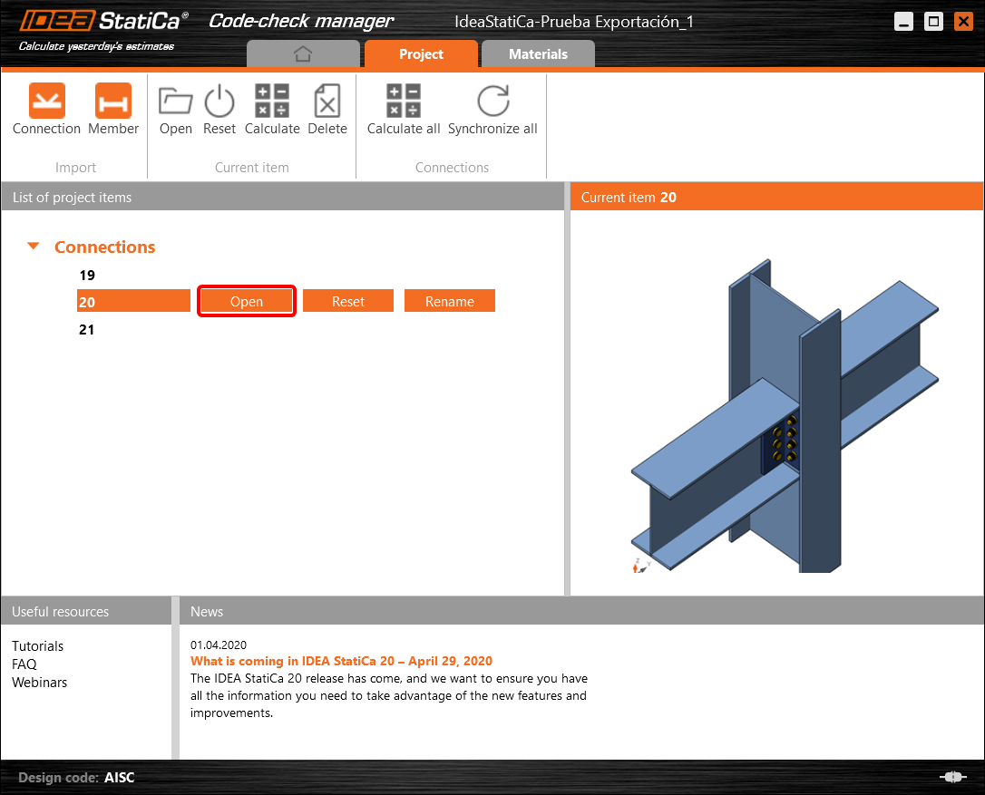 In the next step, you can Open the joint in IDEA StatiCa Connection to explore the changes.