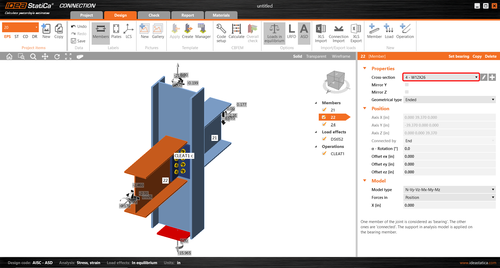 Automatic data transfer is started and IDEA StatiCa Connection with a generated project is launched. All members and load effects were added automatically.