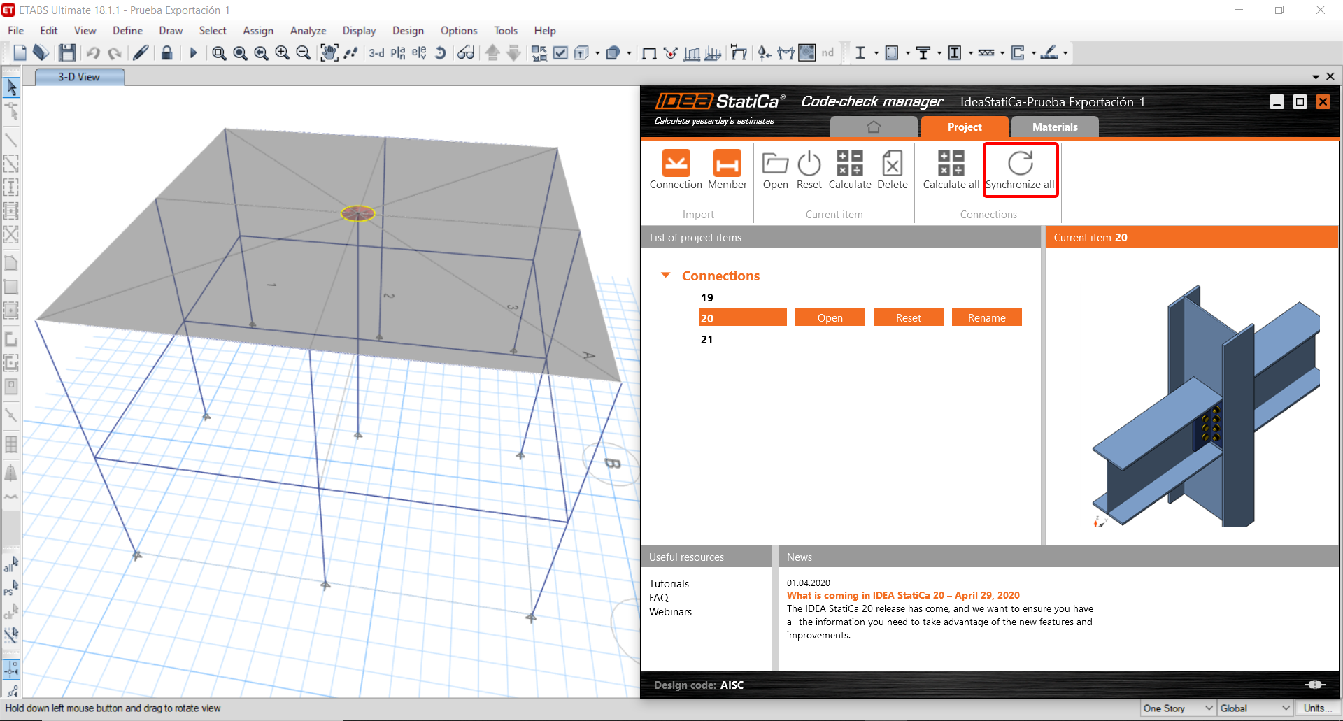 ETABS BIM link for steel connection design (AISC)