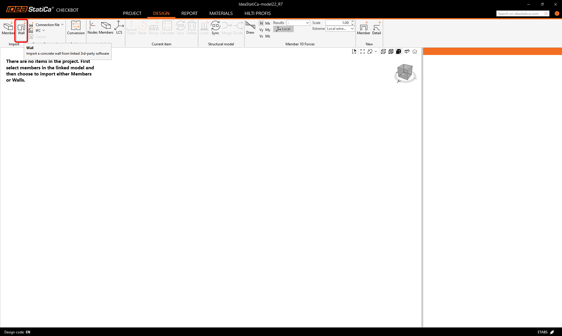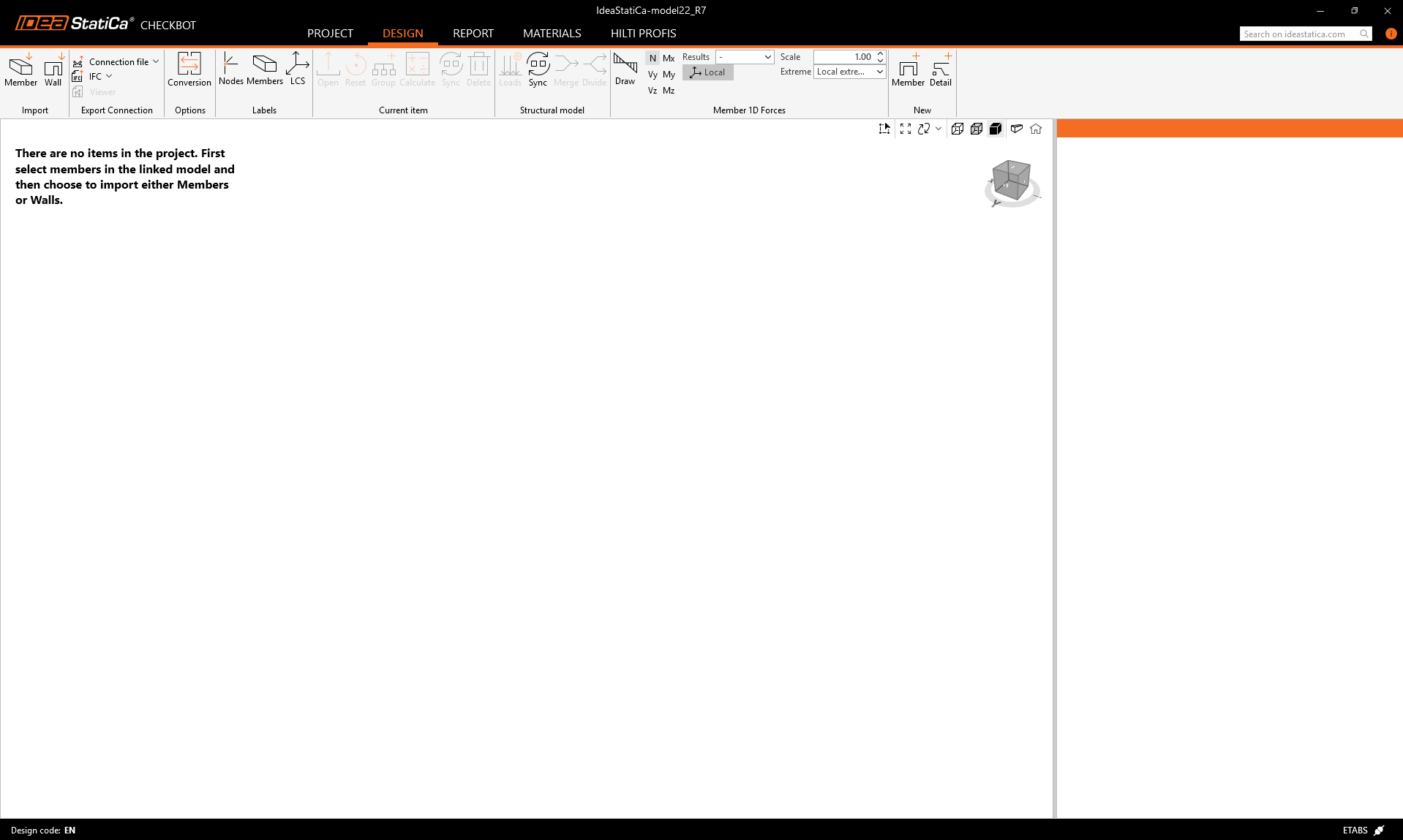 This will open an empty Checkbot project, where you can import structural elements from your ETABS projects.