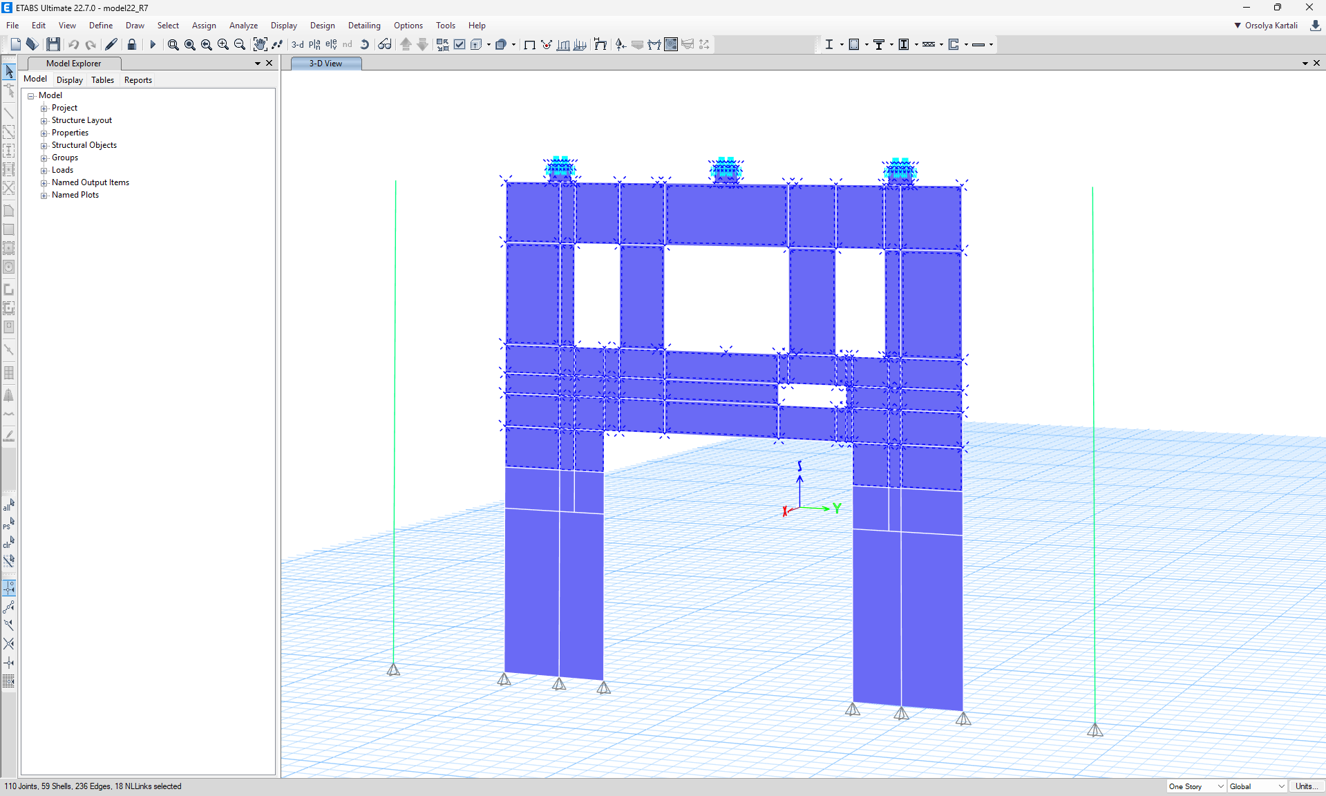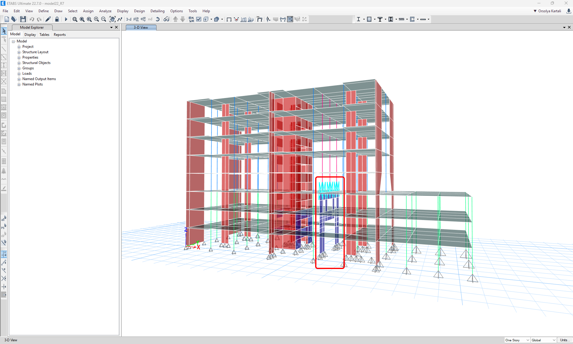 Going back to ETABS, we will display only the selected transfer wall, which will be used for the import.