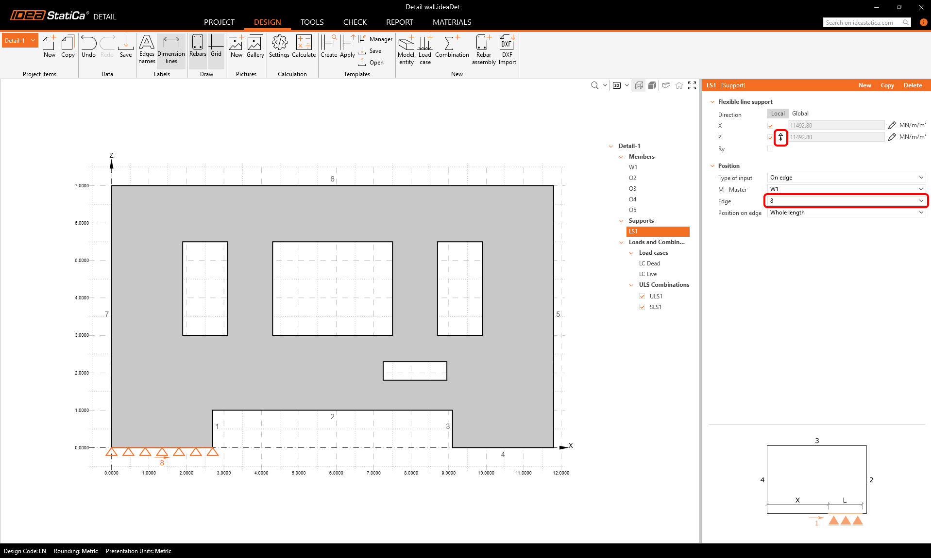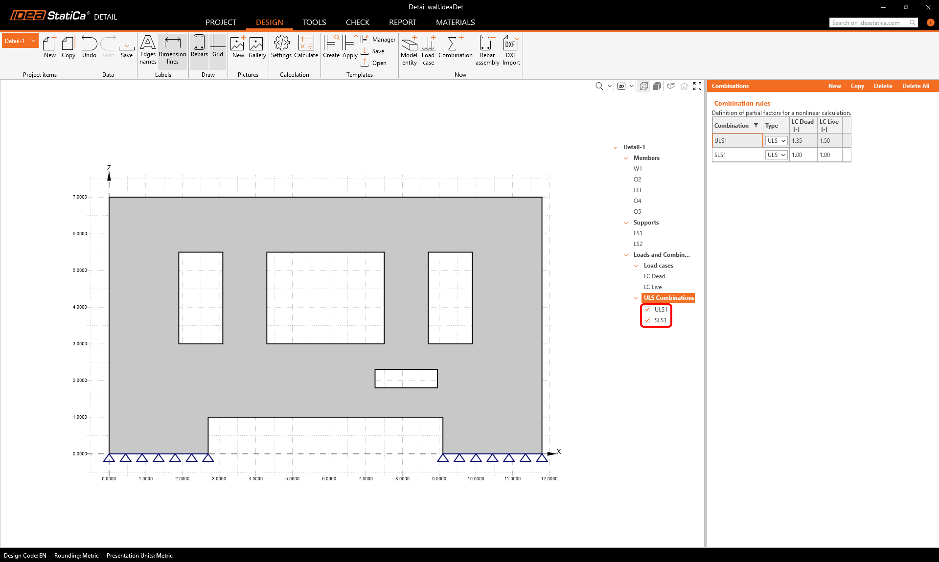 We can see that there are two load combinations imported, by default both are set as ULS combinations.