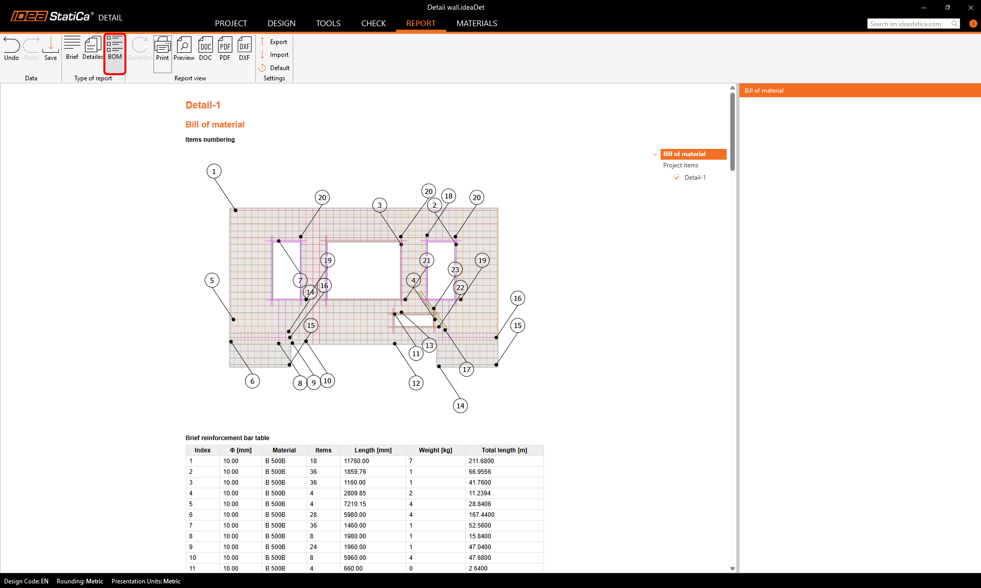 After import, we should see the wall in Checkbot. We will now export it into the Detail application by first clicking the Detail+ button in the top ribbon: