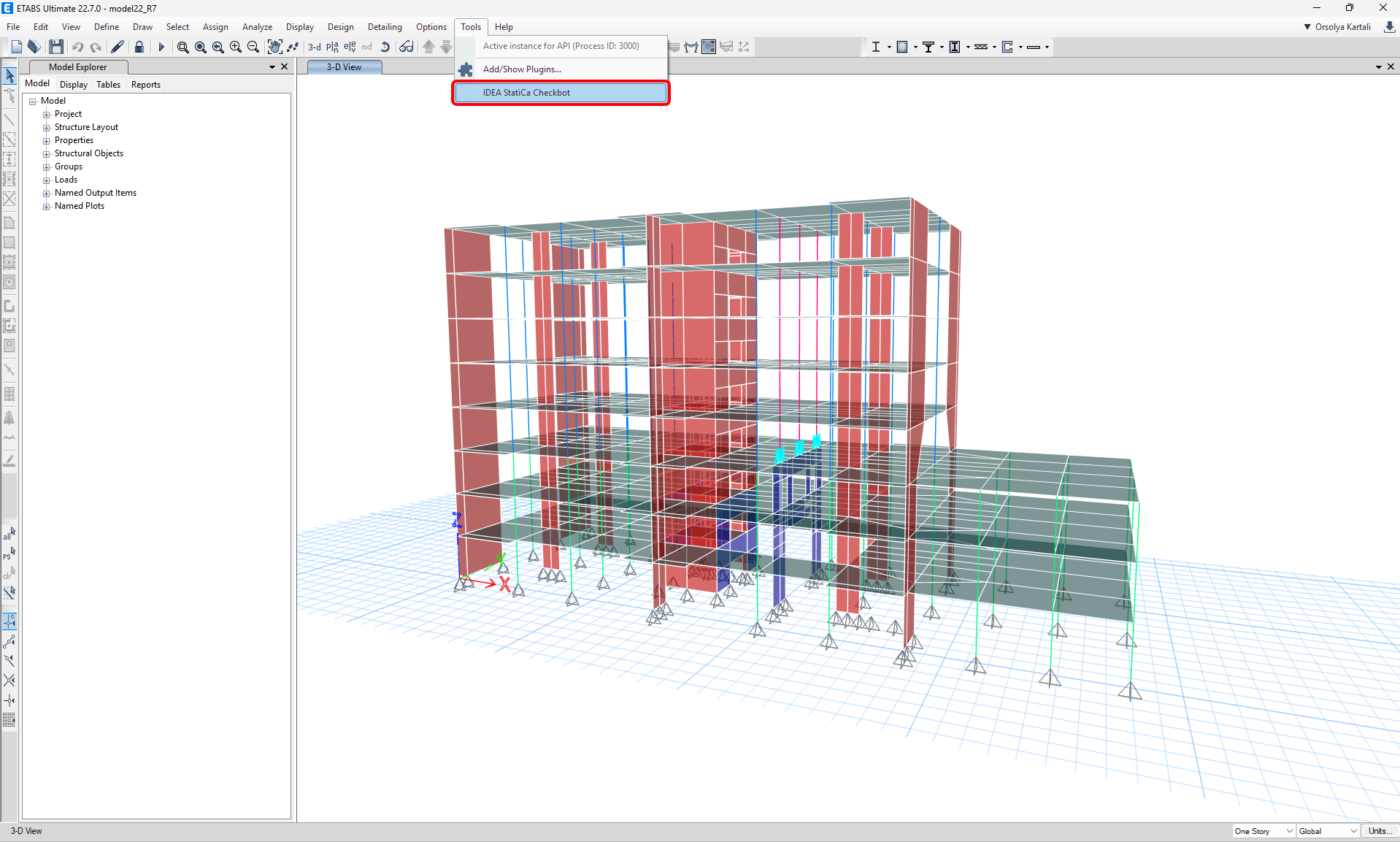 If the window with the IDEA StatiCa Checkbot doesn't appear, please go to C:\Program Files\Computers and Structures\ETABS 22 and run as Administrator the file RegisterETABS.exe.