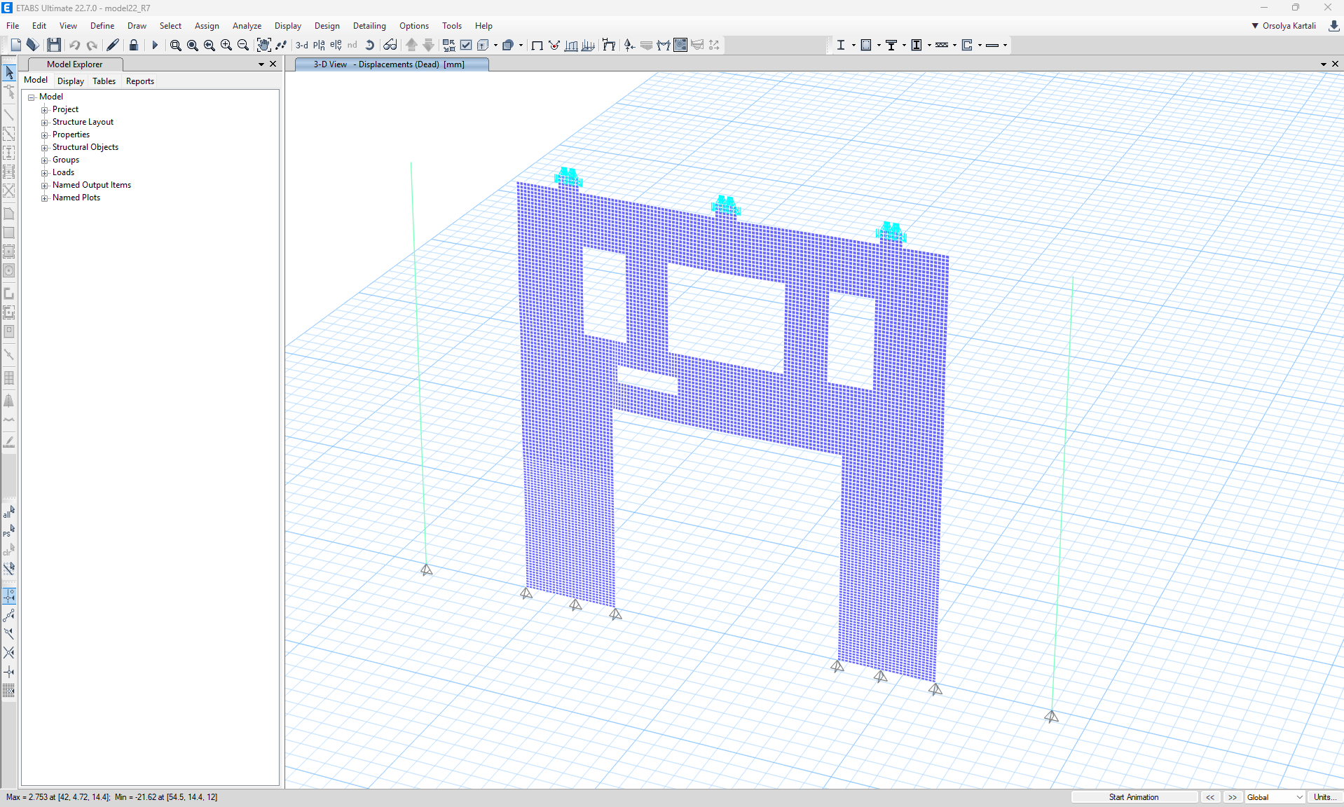 We can now run a first calculation of the model to see how it behaves and where we should add reinforcement.