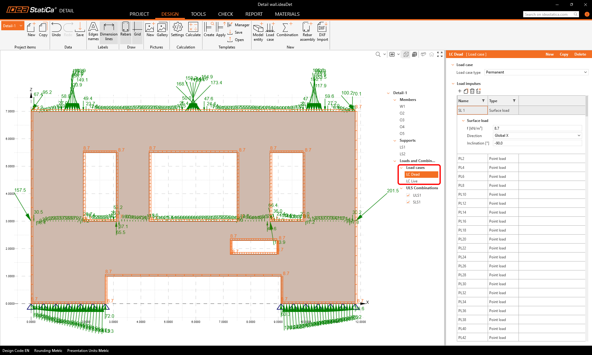 As can be seen, two load cases were imported from ETABS, one is permanent, the other is variable. The process of the force import is described in detail in this article.