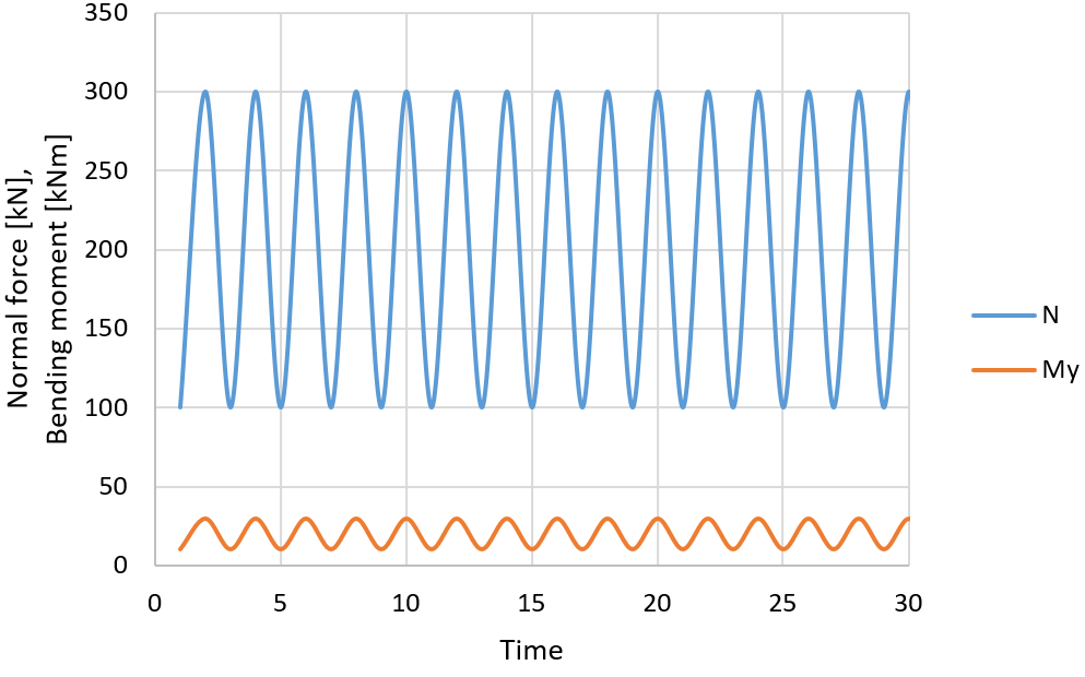 An example of fatigue analysis using nominal stress is shown for a design according to EN 1993-1-9:2005.