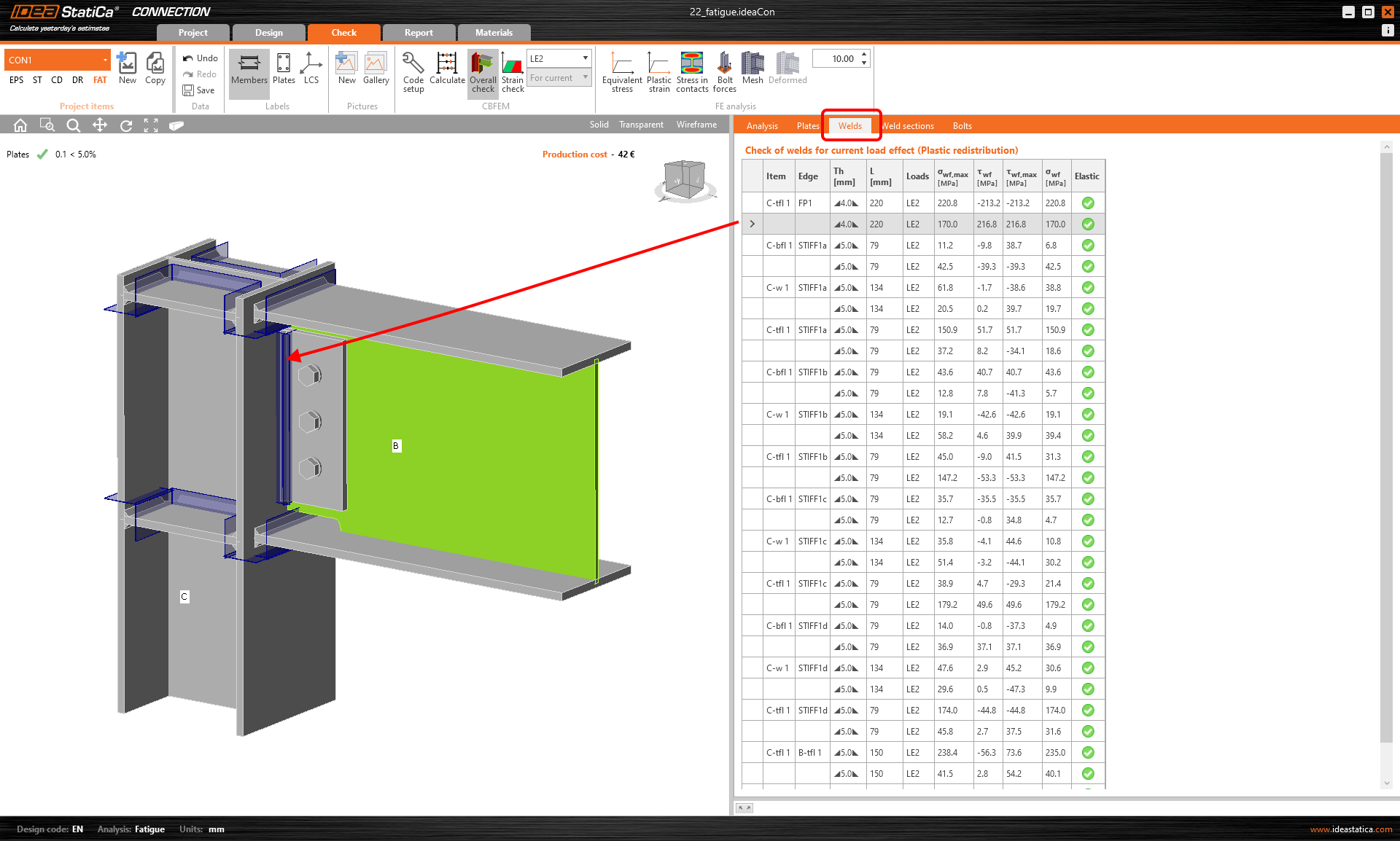 The results for plates at the weld are now available under the Weld sections tab.