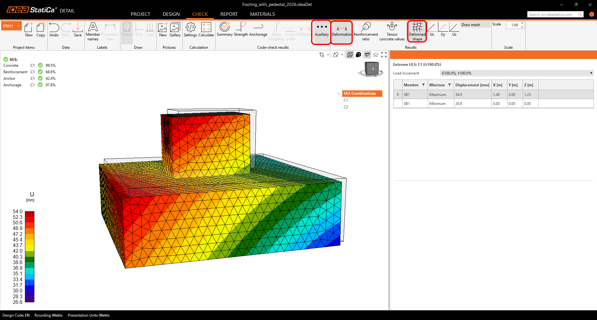 The Deformation verification has been relocated to the Auxiliary tab. It is worth noting that deformation analysis should serve as the initial sanity check to ensure that the behavior aligns with anticipated outcomes.