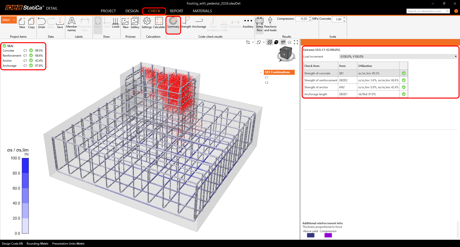 Run the calculation and observe the summary check. These results give you a clear pass/fail.