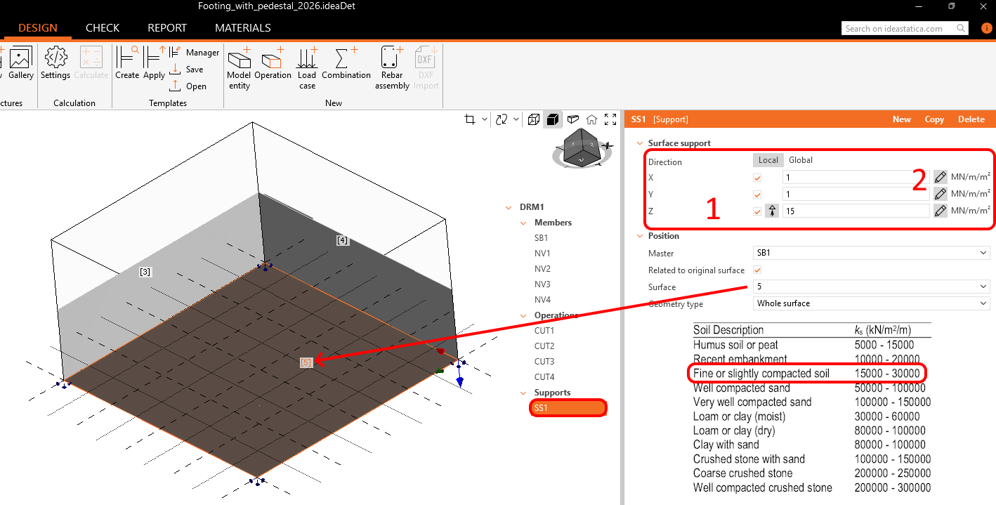 The support system provides three degrees of freedom. The surface support provides separate stiffness inputs in all three directions. These parameters have a crucial influence on the overall model behavior.