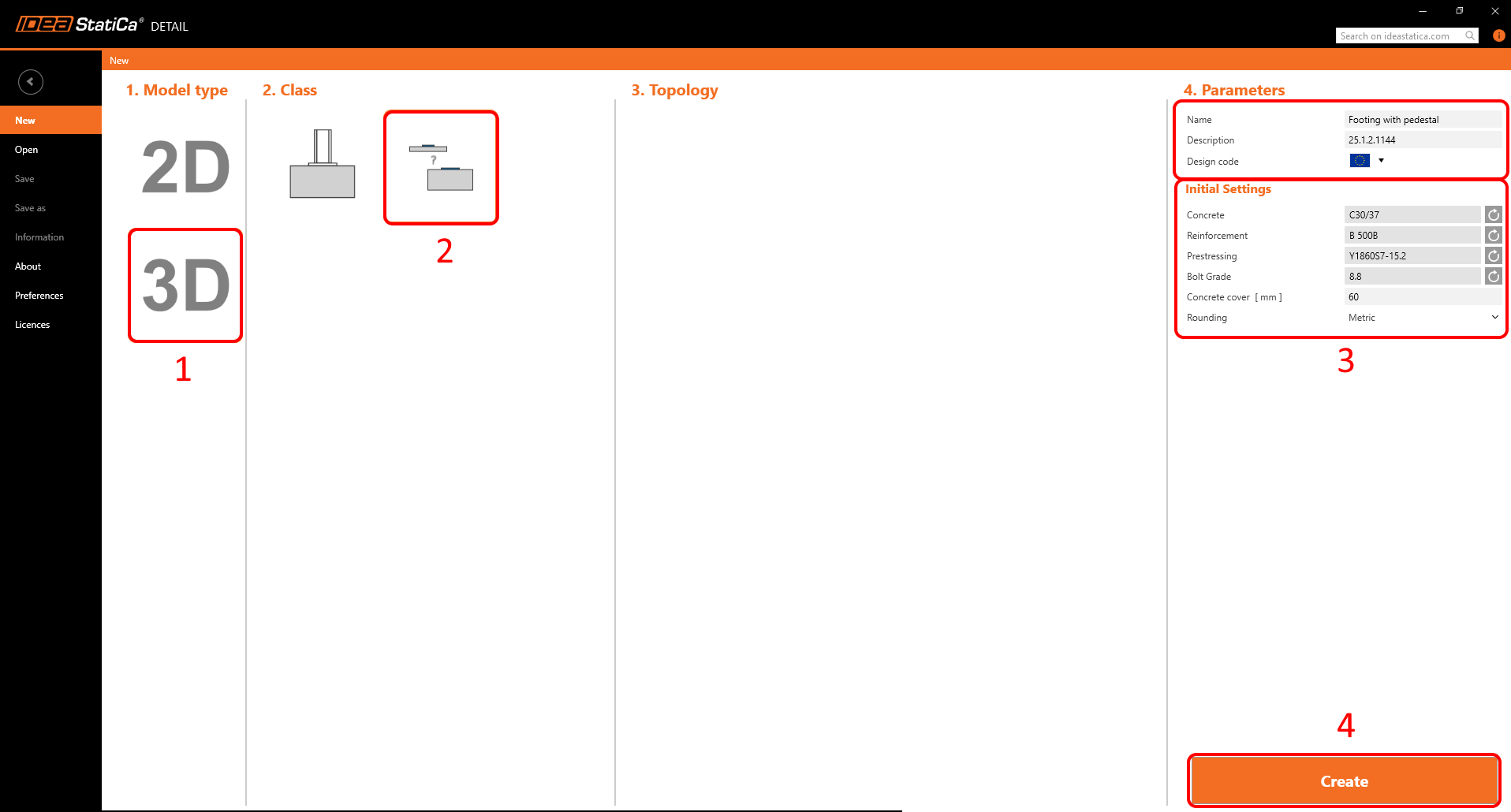 Select the Model Type - 3D -> Class - General ->Parameters and Initial Settings, and Create the model.